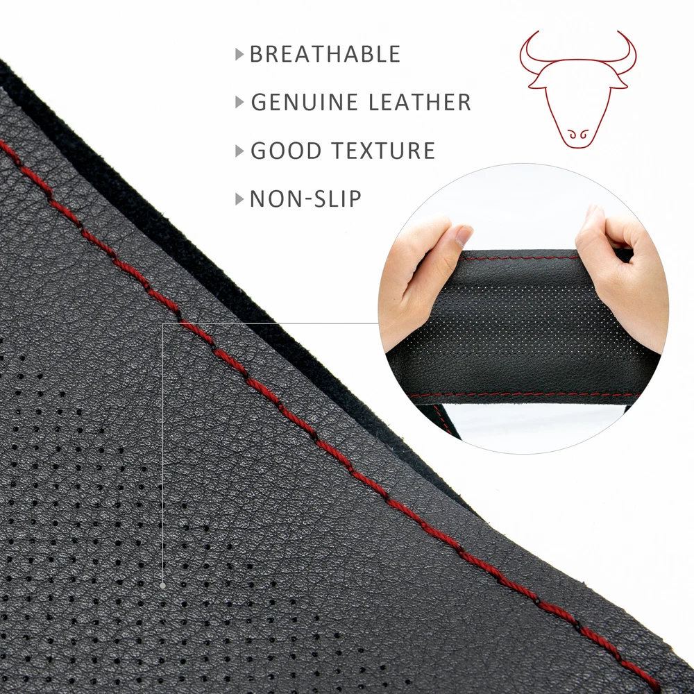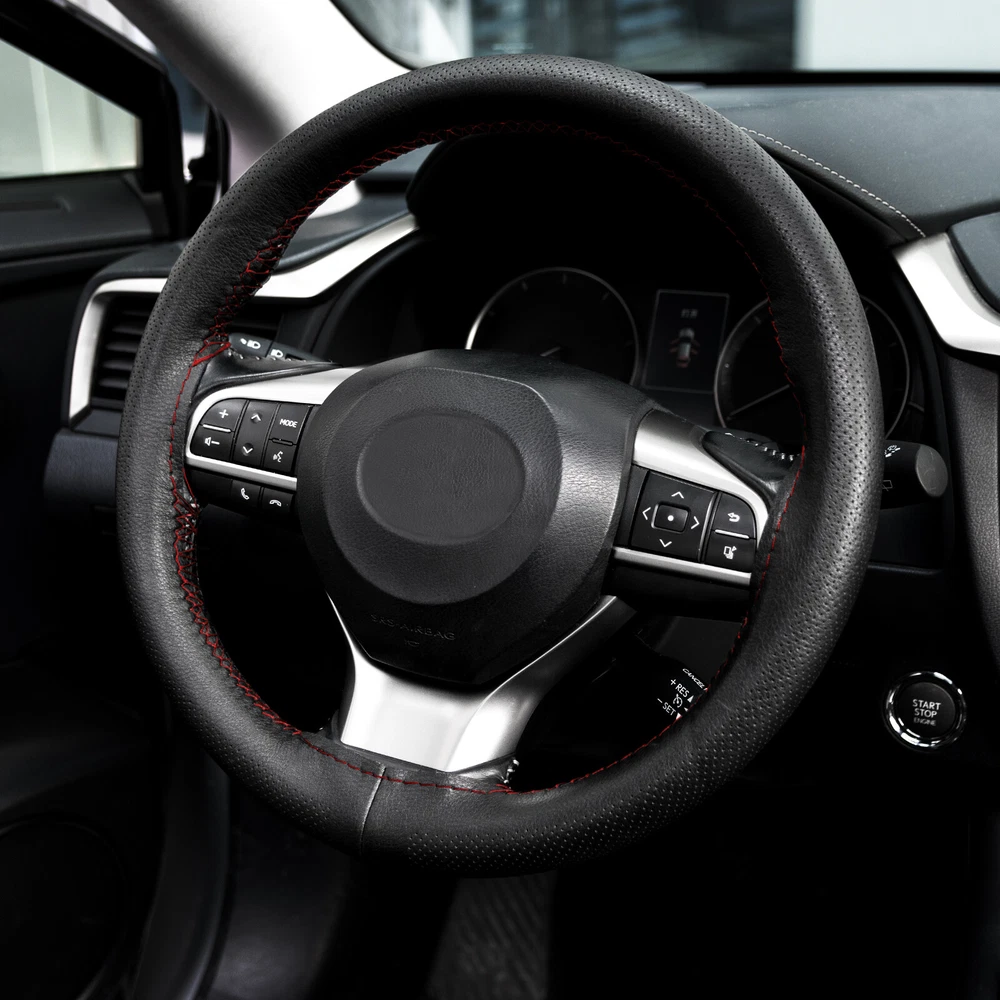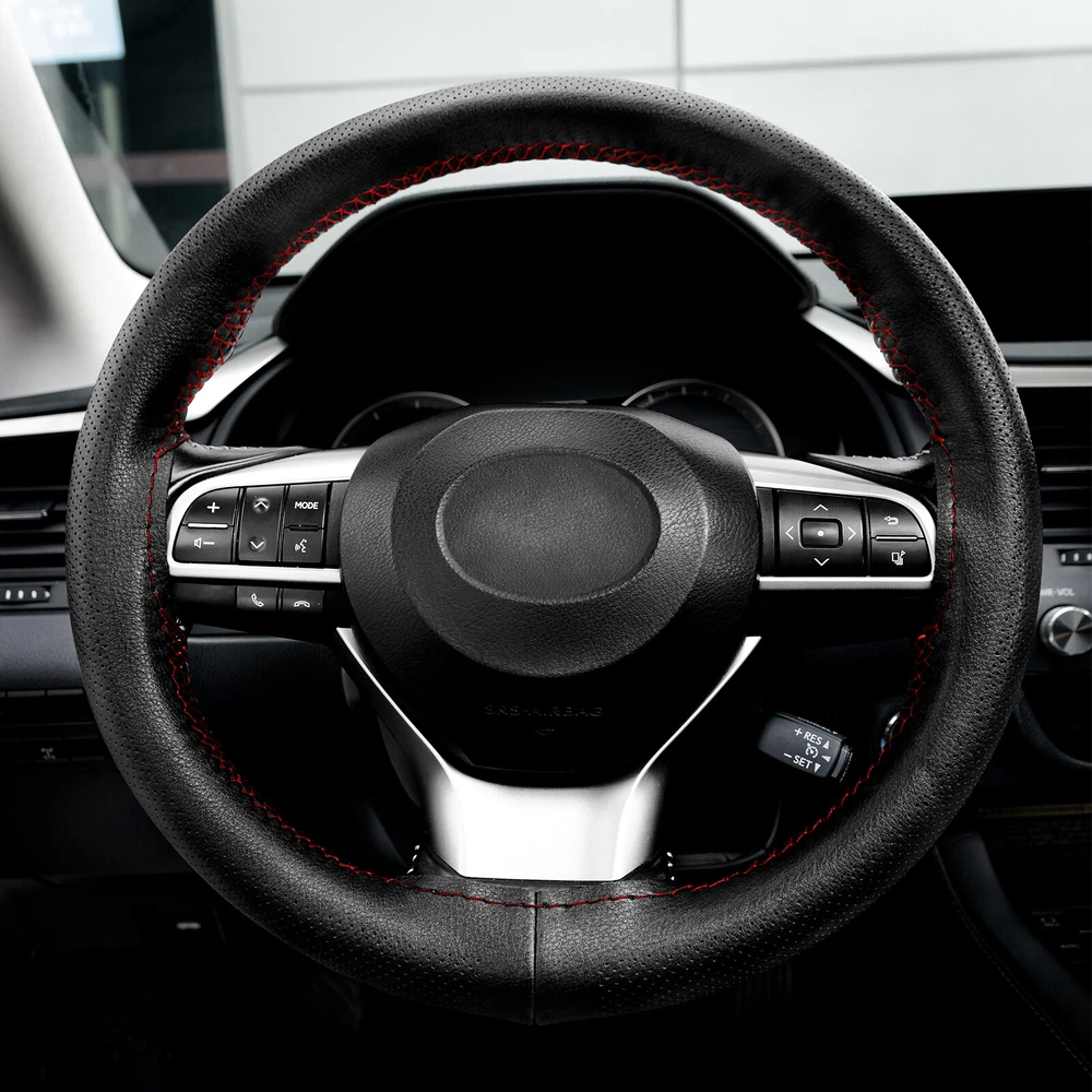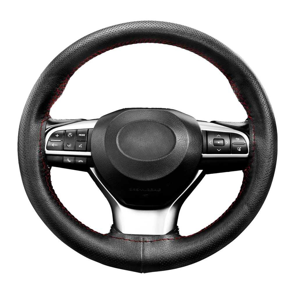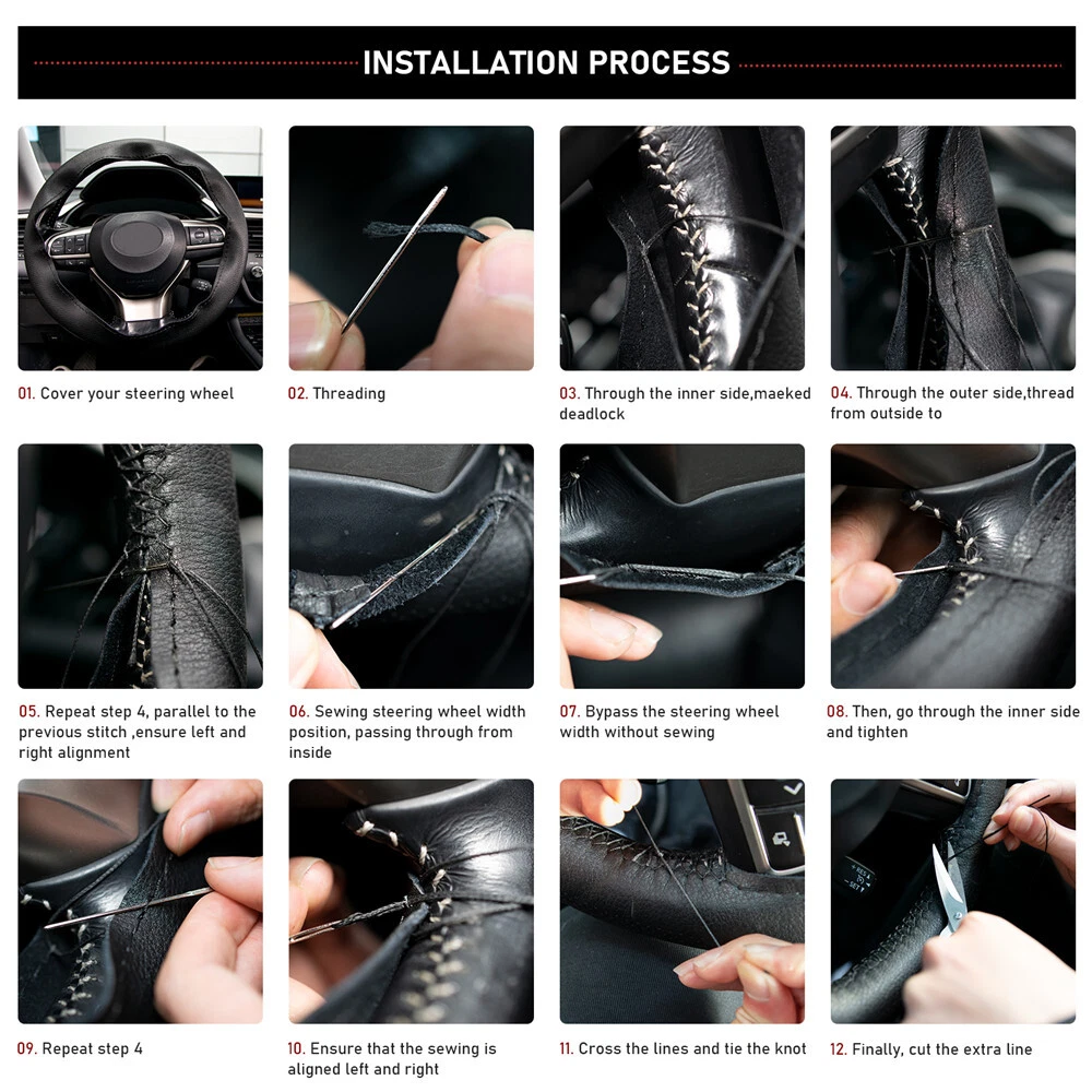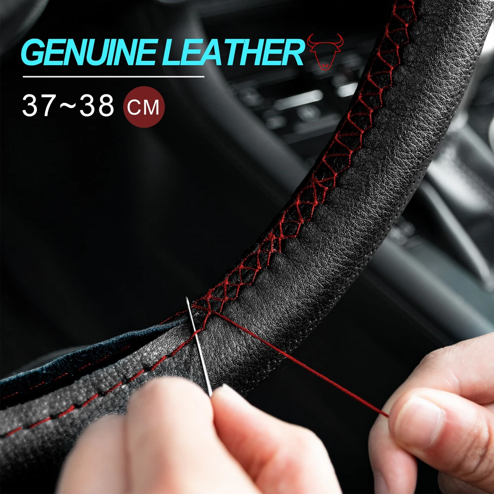 Universal DIY Car Steering Wheel Cover Genuine Leather Non-slip 15"/38cm Red DIY Hand Sewing Genuine Leather Punched Breathable Steering Wheel Cover with Needle and Thread Specifications:: soft, clean, Non-slip exquisite and comfortable handle Size:M (103.6 x 10.58cm (Length x Width) , fits steering wheels with outer diameter of 37~38 cm) Outer Diameter: approx. 37-38CM (14.5" to 15") Material: genuine leather(Cowhide ) Package contents: 1 x Steering Wheel Cover 1 x Needle 1 x Thread Please note: This item is an stitch warp which mean buyer will need to sew this item onto the steering wheel. The color may shown different with the real product since every monitor has different resolution It DO NOT come with any installation guide / instruction.You can refer to the installation instructions in the picture。Also, Installation video can be easily to find online !!! DIY Hand Sewing Genuine Leather Punched Breathable Steering Wheel Cover with Needle and Thread Specifications:: soft, clean, Non-slip exquisite and comfortable handle Size:M (103.6 x 10.58cm (Length x Width) , fits steering wheels with outer diameter of 37~38 cm) Outer Diameter: approx. 37-38CM (14.5" to 15") Material: genuine leather(Cowhide ) Package contents: 1 x Steering Wheel Cover 1 x Needle 1 x Thread Please note: This item is an stitch warp which mean buyer will need to sew this item onto the steering wheel. The color may shown different with the real product since every monitor has different resolution It DO NOT come with any installation guide / instruction.You can refer to the installation instructions in the picture。Also, Installation video can be easily to find online !!!