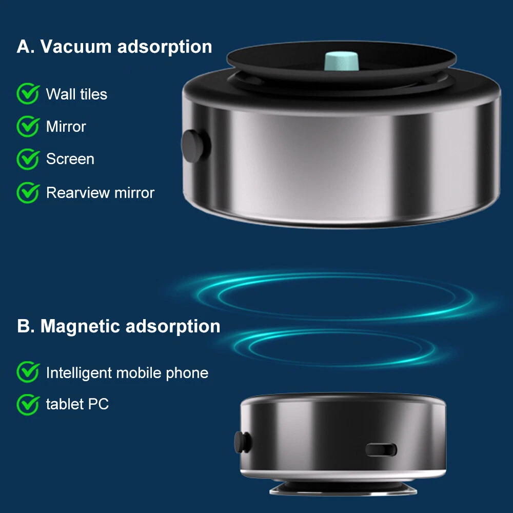 Features: 1. Strong magnetic suction and electric vacuum adsorption double insurance: Adopting advanced magnetic suction technology, it can instantly and firmly adsorb the mobile phone, ensuring that the phone will not fall off during bumps, shakes and even emergency braking. At the same time, the electric vacuum adsorption function further enhances the fixing effect, the two complement each other to provide double solid protection for the mobile phone, so that you can drive without worrying about the mobile phone shifting. 2. Wide compatibility: Whether it's a business mobile phone with a big screen or a small fashionable mobile phone, whether the mobile phone comes with a case or not, this car magnetic mobile phone holder can easily cope with it. Its strong magnetic suction and adsorption ability can be adapted to a variety of different models, sizes and materials of mobile phones, to meet the diverse needs of different users. 3. Convenient installation and use: The installation process is extremely easy, without complicated tools and tedious steps. Simply fix the bracket in a suitable location in the car (such as the centre console) and then gently place the mobile phone to be automatically adsorbed. Moreover, it is also easy to take the mobile phone, one-handed operation can be easily completed, will not distract your attention in the driving process, greatly improving the convenience of use. 4. Protect mobile phone and car interior: The contact area between the holder and the mobile phone is made of special material and design, which will not scratch the surface of the mobile phone. At the same time, in the process of adsorption and disassembly, it will not leave any traces or damage to the interior of the car, effectively protecting your car's interior, so that your driving environment is always neat and beautiful. 5. Stable and durable: The structure of the whole mobile phone holder is designed to be sturdy and stable, able to withstand long-time use and complex road conditions. The magnetic component and electric vacuum adsorption system have gone through strict quality testing and have excellent durability, and are not prone to suction weakening or malfunctioning, providing you with a long-term and reliable use experience. Specification: Name: electric vacuum adsorption mobile phone holder Material: ABS+Zinc Alloy Colour: Black/Silver/POH Size: 6.5*6.5*3cm/2.52*2.52*1.18 inch Battery capacity: 110 mAh Number of magnets: 16PS Suction pressure: 18Kpa-65Kpa Applicable models: 4.7-inch smartphone or above Package List: 1 x Stand 1 x USB charging cable 2 x Dusting cloth 1 x Non-marking sticker 1 x Magnetic attractor sheet Note: Due to different light and screen settings, the colour of the item may be slightly different from the picture. Please allow 1-2cm size difference due to different manual measurement. On Nov 28, 2024 at 01:03:19 PST, seller added the following information: