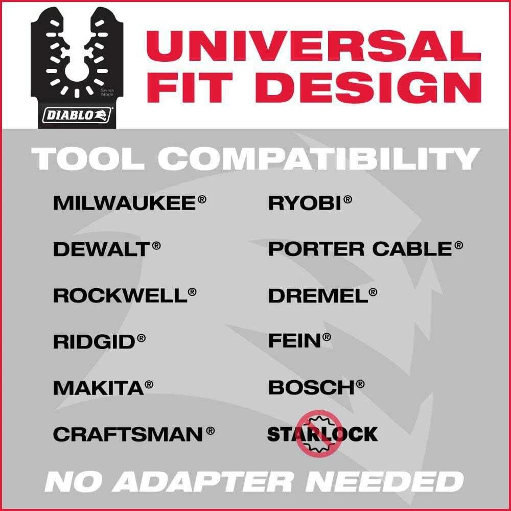■Ultra-hardened cutting edge for up to 5X longer life than standard blades ■Curve contact edge for precise, clean plunge cuts with less vibration ■Black I.C.E. coated teeth for heat resistance, long-life and superior chip evacuation Up to 2 in. cutting depth ■Universal interface design fits most tools, no adapters needed ■Universal, adapter-free design to fit most tools ■Features a curve contact edge to allow precise cuts ■Black I.C.E. coating protects from heat ■Universal Fit Wood and Metal Oscillating Blade Set (5-Piece) ■DIABLO 5-Piece universal fit bi-metal oscillating blades for wood & metal cutting feature application specific designs that deliver maximum durability and longer life in wood & metal applications. These high-performa... Outdoor garden living convenience station Universal Fit Wood and Metal Oscillating Blade Set (5-Piece) ■Ultra-hardened cutting edge for up to 5X longer life than standard blades ■Curve contact edge for precise, clean plunge cuts with less vibration ■Black I.C.E. coated teeth for heat resistance, long-life and superior chip evacuation Up to 2 in. cutting depth ■Universal interface design fits most tools, no adapters needed ■Universal, adapter-free design to fit most tools ■Features a curve contact edge to allow precise cuts ■Black I.C.E. coating protects from heat ■Universal Fit Wood and Metal Oscillating Blade Set (5-Piece) ■DIABLO 5-Piece universal fit bi-metal oscillating blades for wood & metal cutting feature application specific designs that deliver maximum durability and longer life in wood & metal applications. These high-performance blades feature an ultra-hardened cutting edge to deliver up to 5X longer life than standard blades. Curve contact edge creates a pilot for precise, clean plunge cuts with less vibration. Black I.C.E. (Industrial Cooling Element) keeps the teeth cool and build up free for fast, clean cuts. The blade's universal fit, adapter-free design easily attaches most tools, with the exception of Starlock tools. Set includes one DOU125JBW 1-1/4 in. Blade for Clean Wood with Japanese tooth design; two DOU125BW 1 1/4 in. Blades for Nail Embedded Wood; one DOU125BF one 1/4 in. Blade for Metal; one DOU250BW 2-1/2 in. Blade for Nail-Embedded Wood. ■Ultra-hardened cutting edge for up to 5X longer life than standard blades ■Curve contact edge for precise, clean plunge cuts with less vibration ■■ ■Black I.C.E. coated teeth for heat resistance, long-life and superior chip evacuation Up to 2 in. cutting depth ■Universal interface design fits most tools, no adapters needed ■Universal, adapter-free design to fit most tools ■Features a curve contact edge to allow precise cuts ■Black I.C.E. coating protects from heat ■ Item Specifics Brand Unbranded Type Oscillating Tool Attachments Accessory Fitment Universal About us Dear buyer, Thank you for visiting my store! Our warehouses are located in many regions around the United States. According to the customer's delivery address. Use USPS/UPS/DHL logistics transportation service. Prioritize the best quality logistics solutions to transport packages. Ensure package delivery time, At the same time. Have any after-sales problems, Feel free to contact us. At your service Payment PayPal is our preferred method of payments it's the quickest, easiest and most secure way to pay for your goods or services online. PayPal offers buyer and seller protection should there be a problem. If you do not have a PayPal account, to get started and buy your first item with us is very easy. Simply click on the 'Buy It Now' button and follow the eBay checkout steps. Select PayPal as the payment method you then will be given the chance to enter your card details in to PayPal's secure checkout in order to pay for your order. Shipping 1. Your purchase is shipped directly to you as soon as we have received your cleared payment. 2. Normally all of parcels would be shipped within 3days(From Monday to Saturday). 3. We will send information on eBay or email if the parcel was delayed due to our holiday. 4. We provide three kinds of shipping for choice. Shipping way depend on delivery address. Returns If an unit is received defective, of course we take it back or replace it. If the unit is received as expected, we must charge for our expenses if you want to send it back. We have to charge for the work of handling, retesting and restocking. Outdoor garden living convenience station DESCRIPTION PAYMENT SHIPPING RETURN POLICY CONTACT US Shop Category Store Home Home & Garden ▷ Kitchen, Dining & Bar ♢ Kitchen Storage & Organization ♢ Kitchen Sinks ◈ Bathroom ◈ Tools & Workshop Equipment ▷ Furniture ♢ Bedroom ▷ Household Supplies & Cleaning ♢ Mirrors ◈ Heating, Cooling & Air Other Hot Item 3 Gal. 120PSI Portable Electric Pancake Air Compressor USD 52.80 3.5 in. Forged Steel Blade with Durable Hardwood Handles Bypass Lopper USD 35.56 2 in. Cut, 36 in. L Professional Orchard and Landscape Tree Lopper USD 51.64 Landscape Rake,36in.Head Aluminum Landscape Rake,Lake Weed Rake w/75in.Long Hand USD 35.31 22in.Rolling Tool Box,22in.Large Tool Box&22in.Medium Tool Box ProSystem USD 262.90 Picture New List Item #9 x 3 in. Star Drive Dual Flat Head Construction Screws 10 lb. Box USD 51.70 Hartford Matte Black Single Cylinder Project Pack USD 34.50 All Purpose Full Size Black Glue Sticks (24-Pack) USD 15.70 Zipper Bag, Canvas Tool Pouch 12.5 x 7 x 4.25-Inch USD 12.60 CH38A Autofeed Cap Hammer USD 94.60 Help & Info Payment Policy Shipping Policy Return Policy FAQ About Us Universal Fit Wood and Metal Oscillating Blade Set (5-Piece) ■Ultra-hardened cutting edge for up to 5X longer life than standard blades ■Curve contact edge for precise, clean plunge cuts with less vibration ■Black I.C.E. coated teeth for heat resistance, long-life and superior chip evacuation Up to 2 in. cutting depth ■Universal interface design fits most tools, no adapters needed ■Universal, ad