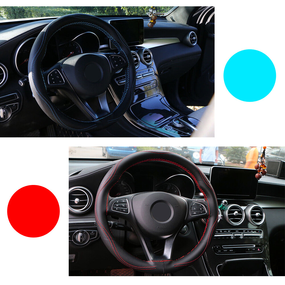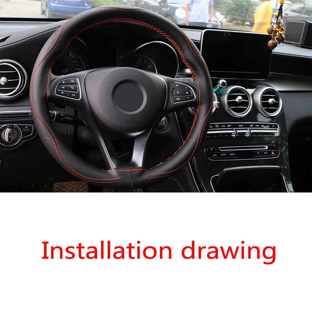 $ 6.53DIY Universal 38cm Black Carbon Leather Car Steering Wheel Cover+Needle Thread