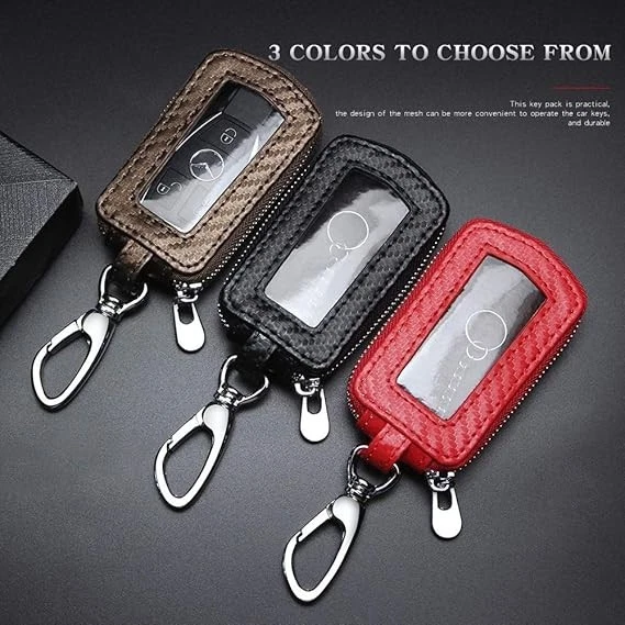 Universal Key Fob Case: This Key fob holder size is 3.35in*1.97in*0.79in.Suitable for most car keys. If you are not sure about your car key size, please contact us. Premium Leather: Natural leather will change color and texture over time, creating a deep taste. In addition, it looks very soft. The surface of the shrinkage leather is coated to prevent scratches, and has a certain elasticity, so it is not easy to deform as for the appearance. Practical design: This car key case comes with a durable snap hook, nice for carrying in a pocket or hanging on a belt, and the surface is designed in transparent color, so you don't need take out the key can be unlock(lock) the car door directly. Excellent workmanship: This unique car keychain case has a good craftsmanship, making it look quite stylish and handsome, both men and women can match well.