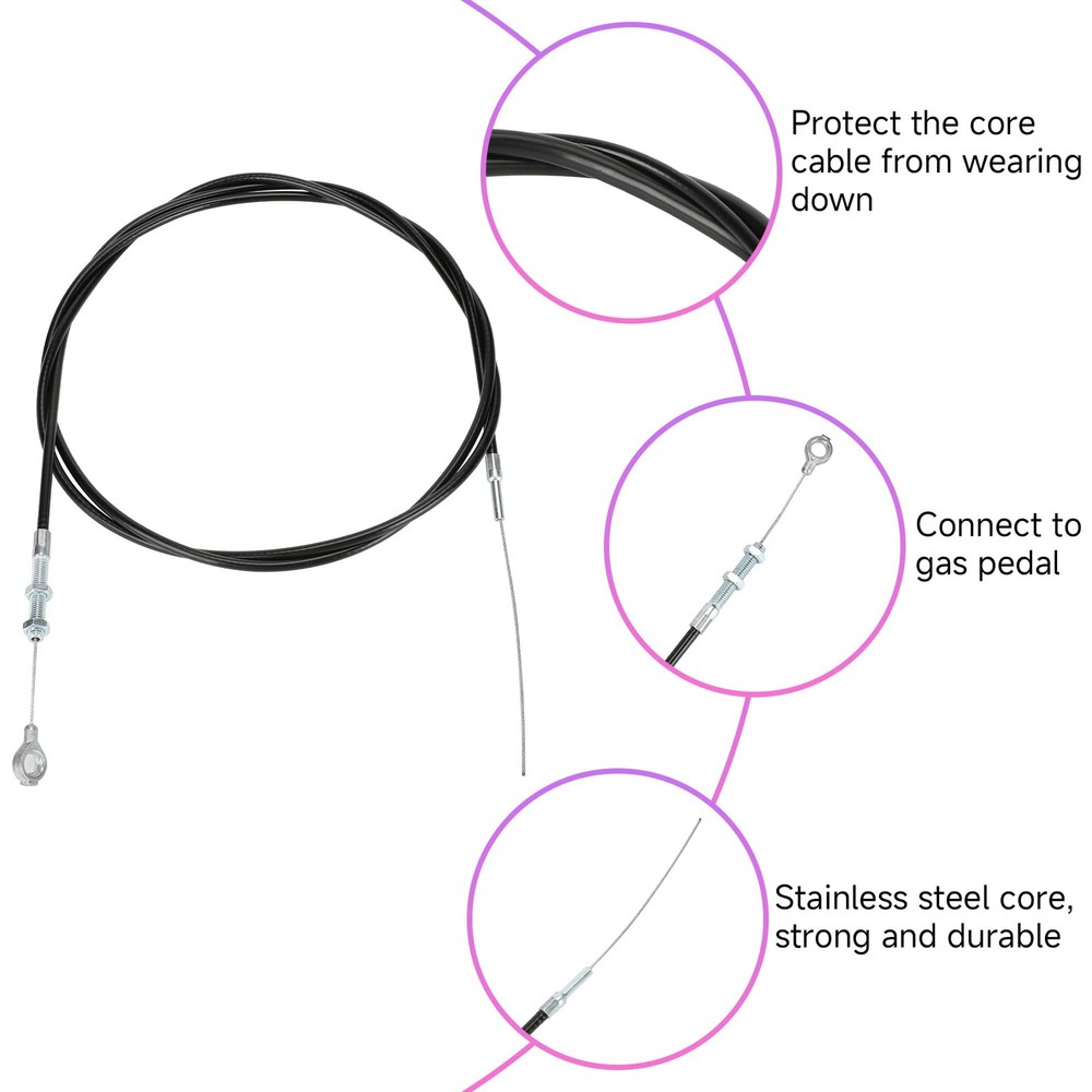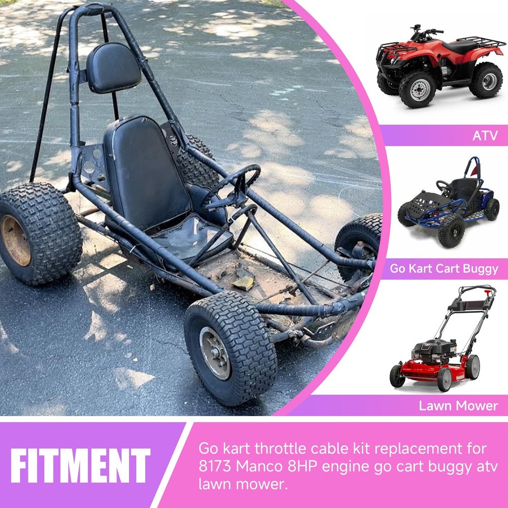 1. This throttle cable kit is a perfect upgrade for Manco 8173 go karts! The 90" length gives plenty of flexibility for installation, and the durable outer casing keeps the inner wires protected. Comes with everything you need—throttle cable, return springs, stops, and ties—making setup a breeze. Works smoothly with 8HP engines, ATVs, and lawn mowers. Great quality at an affordable price!