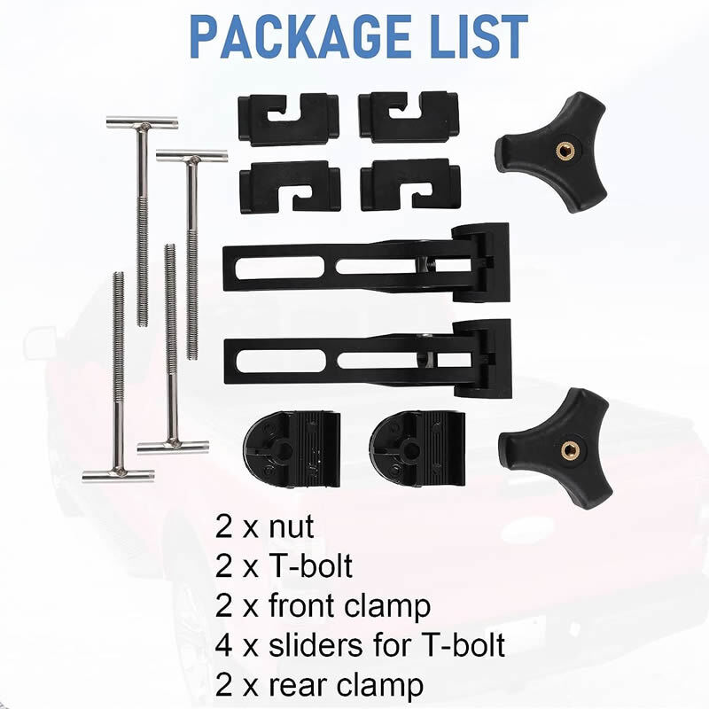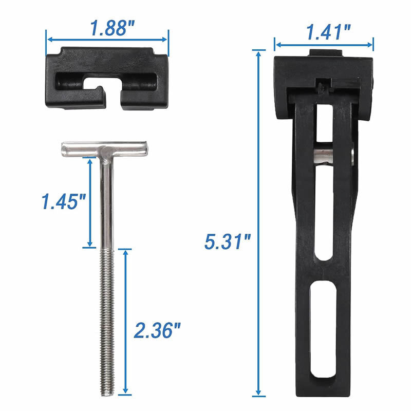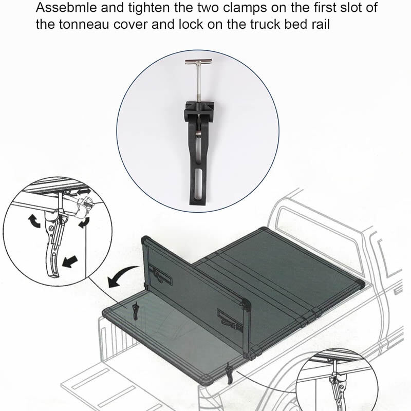 Universal Replacement and Accessories Part Kit for Hard Tri-fold & Quad-fold Truck Bed Cover Include Nut, T-Bolt and Tonneau Cover Clamp, 2X Rear Clamp [FITMENT] Only fit for hard quad-fold or hard tri-fold truck bed cover. [MATERIAL] Made of premium plastic and aluminum for durability and stability. [EASY TO INSTALL] Easy installation, back up for the replacement. [PACKAGE INCLUDE] 2x triangle screw, 2x front clamp, 2x rear clamp, 4x T-bolt. [NOTICE] For any reason, if you are not satisfied with your purchase, contact us directly. Universal Replacement Part for Hard Tri-fold Tonneau Cover Include T-Bolt, Rear Clamp, Front Clamp Only fit hard quad-fold or hard tri-fold truck bed cover Made of premium plastic and aluminum for durability and stability Easy installation, back up for the replacement Package Include 2x Triangle Screw 2x Front Clamp 2x Rear Clamp 4x T-bolt Installation Instruction