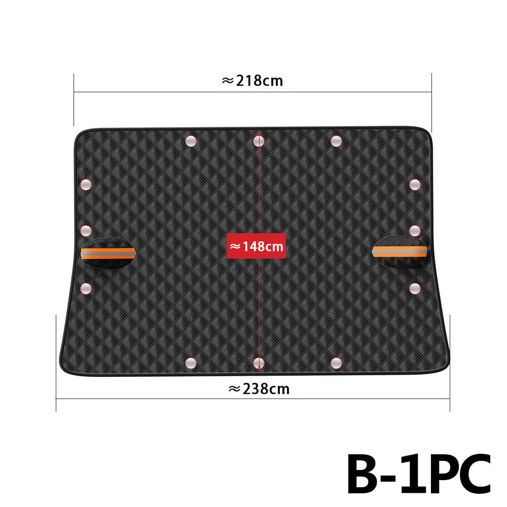 Package includes: 1 x Car Window Snow Cover Feature: 1. Comprehensive Protection: The car front windshield cover ensures year-round preservation of your vehicle. Its versatile and weather-resistant design withstands most weather conditions, and it also covers the roof for enhanced protection. 2. Windproof Design: With a worry-free anti-loss design, the snow ice protection cover securely attaches to your vehicle and won't blow away even in the strongest winds. Suitable for all seasons, it's practical and dependable. 3. Safe Usage: The car window snow cover incorporates a unique anti-theft mechanism to prevent theft and wind dragging, ensuring safety. It shields against rainwater, freezing mirrors, and features reflective warning stripes to prevent accidents, especially at night. 4. Waterproof and UV-Resistant: Made from durable, wear-resistant material, the windshield snow shield protects your windshield from rain, frost, snow, UV rays, and dust, offering four-season protection and comprehensive coverage for your vehicle. 5. Easy Installation: No tools are required for installation. By connecting the elastic strap to your rear-view mirror, you can easily set up the winter car front windscreen cover within minutes. It's also portable, easy to store and fold, making it a convenient accessory for your car. Specification: Material: aluminium film + non-woven fabric Colour: black Style : snow shield+12pcs magnets Size: 238x218x148cm/9.37x8.58x5.83inch Applicable models: universal