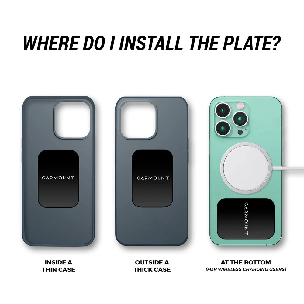 STRONG MAGNETIC HOLD: Designed for maximum grip, these high-quality metal plates keep your phone securely in place, even during sharp turns, sudden stops, or bumpy rides. PREMIUM MATTE FINISH: The sleek, ultra-thin design features a durable matte finish that adds a touch of elegance to your phone or case without adding bulk. UNIVERSAL COMPATIBILITY: Perfect for all smartphones and magnetic mounts, these plates provide a versatile solution for any device, case, or car dashboard setup. WIRELESS CHARGING: If you use wireless charging, our metal plates are designed to be placed at the bottom of your phone horizontally, ensuring seamless compatibility with wireless charging pads. EFFORTLESS INSTALLATION: Includes 4 plates and an alcohol wipe kit for simple, tool-free setup in minutes, saving you time and effort.