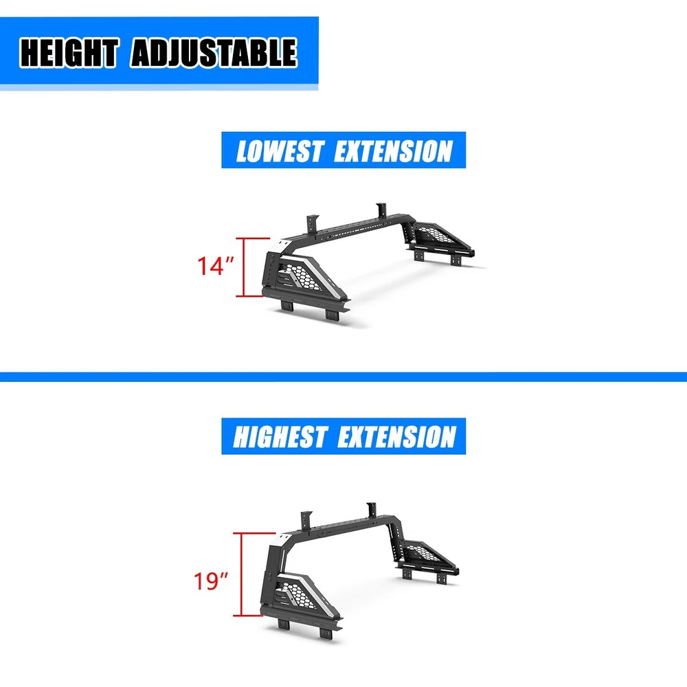 Head Lights Tail Lights Fog Lights Turn Signal Bumper Fender Flare Inner Fender Hubcaps Refrigerator Other Items for sale Head Lights Tail Lights Fog Lights Turn Signal Bumper Fender Flare Inner Fender Liners Portable Refrigerator For Universal Pickup Mid-Size Roll Bar Truck Adjustable Bed Rack Roof Adjustable Compatible with: For 1994-2004 Chevrolet S-10/GMC Sonoma For 2004-2012/2015-now Chevy Colorado/GMC Canyon For 1993-2011 Ford Ranger For 2019-2023 Ford Ranger For 2020-now Jeep Gladiator For 2001-2024 Toyota Tacoma For 2022-2024 Toyota Tundra For 2001-now Nissan Frontier For 2004-now Nissan Titan For 2006-2014/ 2017-now Honda Ridgeline Features Full New: 100% brand new and premium quality. Fitment: Compatible with All Full Size Trucks Material: The heavy duty steel construction and black powder coat finish make your truck feel good. Perfect for use in extreme temperatures and weather. Unique Design: Cold-rolled steel plate with black powder coating, equipped with welding technology, safe and non-toxic, has excellent anti-corrosion performance and electrical insulation performance, greatly improves the service life of the product, and effectively prevents the generation of rust. Warranty: 1 year manufacturer's warranty, 60-day return policy, premium quality and after-sales service, you can buy with confidence! Professional After-sales: If you have any questions, you can contact us, we have a professional after-sales team to solve your doubts! Bed Rack 1.Included a set of LED Lights mounting bracket 2.Widith adjustment range of 62.2-72.8 inches 3.Dimension-Length 30.4" 4.Height adljustment range of 14-19 inches 5.Works With or Without Factory Bed Side Rail Mounts 6.Micro-Texture Black Powder Coat Finish 7.With Raised Base to Accommodlate Tonneau Cover 8.Can be secured by punching holes in the bed shouldlers or Locked to factory sicdle rails Package Includes 1* Front Modular Overland Bed Rack 1* set of Mounting Accessories