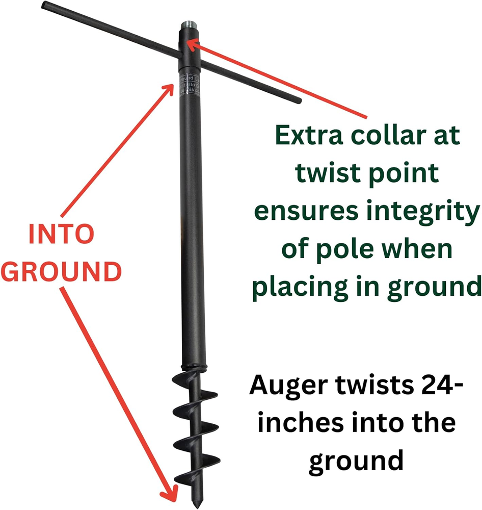 Store New Arrivals Add to Favorite View Feedback Contact Universal Mounting Pole Kit - Great for Post-Mounted Bird Houses and Bird Feeders, Heavy Duty Pole with Threaded Connections Description Item model number LPIUPK08 Mounting Type Hanging Mount Color Black Is Discontinued By Manufacturer No Brand Squirrel Stopper Material Steel Country of Origin China Item Weight 7.93 pounds Theme Squirrel Target Species Squirrel Recommended Uses For Product Seed, Feeding Station Department mens Manufacturer Squirrel Stopper Special Feature Heavy Duty Product Dimensions 24"L x 6"W x 6"H Included Components Baffle Sturdy design will hold some of the largest pole mounted birdfeeders and birdhouses. This pole is made by Squirrel Stopper, but is not a squirrel proof pole. View the Squirrel Stopper Store for squirrel-proof pole options. Galvanized and powder-coated to fight the damaging effects of rust and long-lasting. Installed height is approximately 5 feet. A heavy-duty auger with threaded joints means easy installation and a sturdy pole Includes metal mounting flange to post mount your feeder or birdhouse. Please note: this item is not intended for hanging items. Innovative design features 1 1/4 inch pole with 1 inch top for easy use with many birdfeeder brands Product Description Provide a secure bird house foundation! Keep Heavy Bird Feeders Secure! The Universal Pole Kit will hold even the heaviest bird feeders weighing up to 25 pounds when full of seed. Universal Mounting Pole Kit The perfect birdhouse and bird feeder pole kit! Mounting your birdhouse or bird feeder has never been easier. This 1 1/4" diameter pole is made of powder-coated steel, making it stronger than other mounting poles. The top segment tapers to the "universal" 1 inch diameter top where the included mounting bracket will slide on and secure to the pole with thumbscrews. This pole is designed to work with the Squirrel Stopper Standard Baffle (sold separately). 1-1/4" diameter steel-coated pole is extremely durable. Installation height is approximately 5 feet. Includes bracket that allows top or side mounting. Threaded joints make for solid, stable connections. Attached auger easily drives the pole into the ground. There are many reason why the Universal Pole Kit is superior to others! Universal Mounting Bracket The included Universal Mounting Bracket allows you to mount your bird feeder or birdhouse on top of the plate or on the side of the plate, depending on which is best for your item being mounted. The choice is yours with this dual plate! If using the side mount, a plug is included to prevent water from getting in the pole. Threaded Joints Our threaded joints will securely connect your pole segments together without fear of rough weather detaching them. The secure connection is perfect for keeping your bird feeders, houses, and more where they are supposed to be instead of on the ground. Attached Auger The attached auger calls for easy installation. The auger will drive the pole into the ground so it will stay right where you put it! The auger will work with any soil type. Depending on the type of soil, some loosening might need to be done to help guide the auger. Easy Installation The auger and twist rod make for easy installation. Just slide the twist rod into the holes near the top of the lower pole and begin to turn the pole clockwise into the ground. Installation takes minutes! The Universal Pole Kit Auger is the best on the market today. You can't build a house without a solid foundation! The Universal Pole Kit Auger is superior to other systems in several ways. The step-on type mount pictured on the left does not extend into the ground far enough to make it as stable as it should be. Our auger goes 2-feet into the ground to ensure a stable and secure base. A competitor's auger is shown on the far right. You can see that the "blades" on this auger are not very wide compared to those on the Universal Pole Kit Auger. Our more robust auger goes into the ground more cleanly and securely. Keep in mind that the Squirrel Stopper auger is constructed with galvanized, powder-coated steel. This pole will remain in place for years without the fear of rusting and breaking apart. See for yourself - additional comparisons with actual customer photos! The JCs Wildlife Universal Pole Kit vs. popular competitors brands. The first image above shows the JCs Wildlife Universal Pole Kit pole next to that of a popular competitor brand. The JCs Pole is 43% larger in diameter. In fact, we could fit their pole inside the JCs Wildlife Pole. The larger pole diameter makes for a much more sturdy and robust platform from which to mount your favorite bird feeder or bird house. Image #2, shows a close-up of the inside threads and inner wall of the poles. The JCs Wildlife Pole is 2.5X thicker than that of the competitor. Again, much more, durable, stable and robust. Additionally, the inside of the JCs Pole is galvanized just like the outside. The inside of the competitor pole is simply painted black and is not galvanized. Image #3 depicts 2 photos from an actual customer. The JCs Wildlife Universal Pole Kit has been in this Midwest suburban backyard for 5 years. The other pole kit was installed 2 years ago. Both are in the same yard and subjected to the same all-season climate conditions. You can clearly see that the JCs pole is weathering much better and has not faded over time. Both of these poles were black when first put into the ground. More ways the JCs Wildlife - Squirrel Stopper Universal Pole Kit rises above the competition! Durable, rust and fade resistant materials. Our pole systems are constructed from galvanized steel for strength, durability and resistance to rusting. The black powder coating ensures they will look nice in your yard for many years by not fading in the elements. High-quality machined parts. The threaded connections are robust enough to ensure the pole segments will fit together snuggly and not come apart. Sound constr