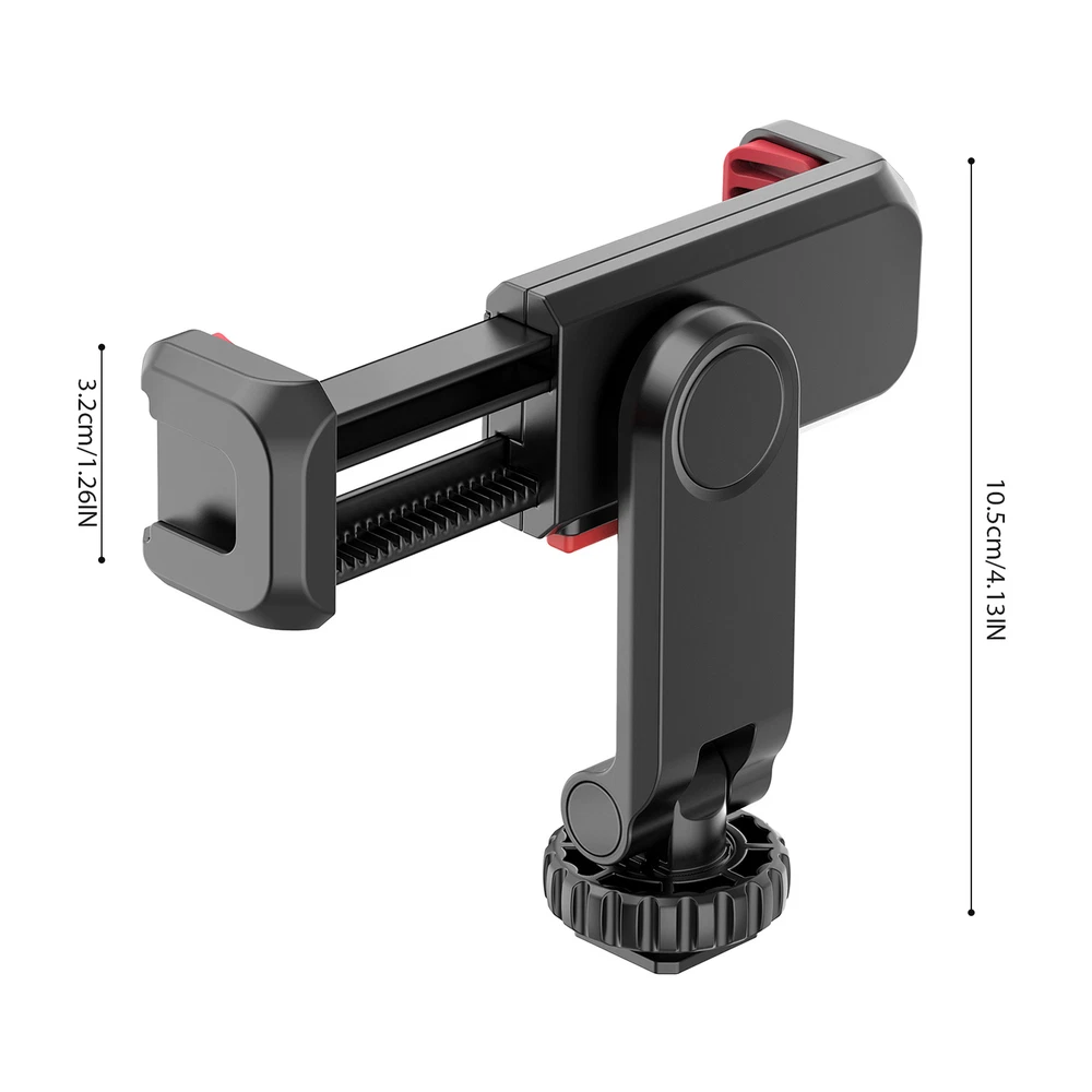 Features: Upgrade Dual Cold Shoe Mount: Dual cold shoe mount design, you can install microphone and fill light at the same time to make your video recording more professional. 360° Rotatable & Z-Axis Design: 360° rotating design, supports horizontal and vertical usage angles; Z-axis design, supports pitch angle adjustment. Easy to Use: Push and lock by simply press the button, upgrade the traditional usage way, easier to use. You won't pinch your finger anymore when install the smartphone to the clamp. Wide Compatibility: 6cm-9cm adjustable clamp width, the phone holder is compatible with most smartphone on the market, and non-slip silicone pad can prevent scratch to your smartphone. Mini and Lightweight: Mini size design, easy to put it into pocket, and net weight is about 51g, very convenient to carry around. Cold shoe adapter and bottom 1/4 inch screw hole for flexible mounting. Specifications: Color: Black Material: Plastic Phone Clip Width: 6cm-9cm Net Weight: 51g/ 1.8oz Packing List: D11143 1 * Phone Holder