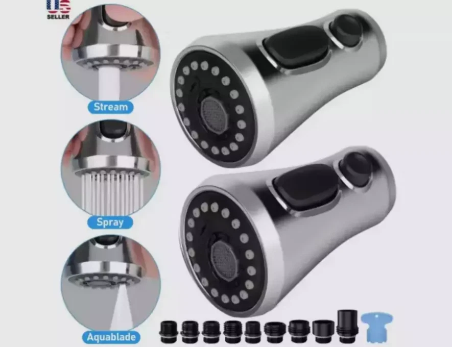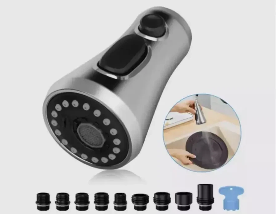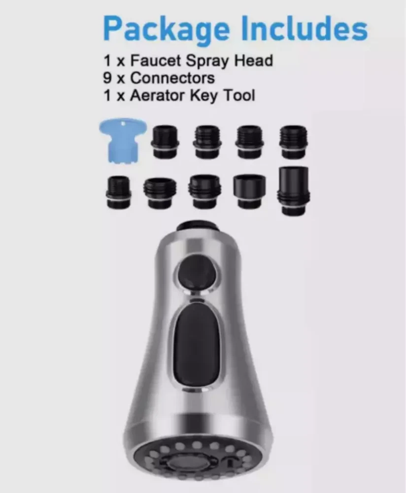 Model: Kitchen Faucet UPC: Does not apply gtin13: Does not apply Type: Pull-out Faucet Brand: Unbranded Material: Engineering-grade ABS plastic Features: 3-Function, Pull-Out, Quick Cleaning, with 9 Adapters Colour: Brushed Nickel Style: Modern Suitable For: Kitchen Sink