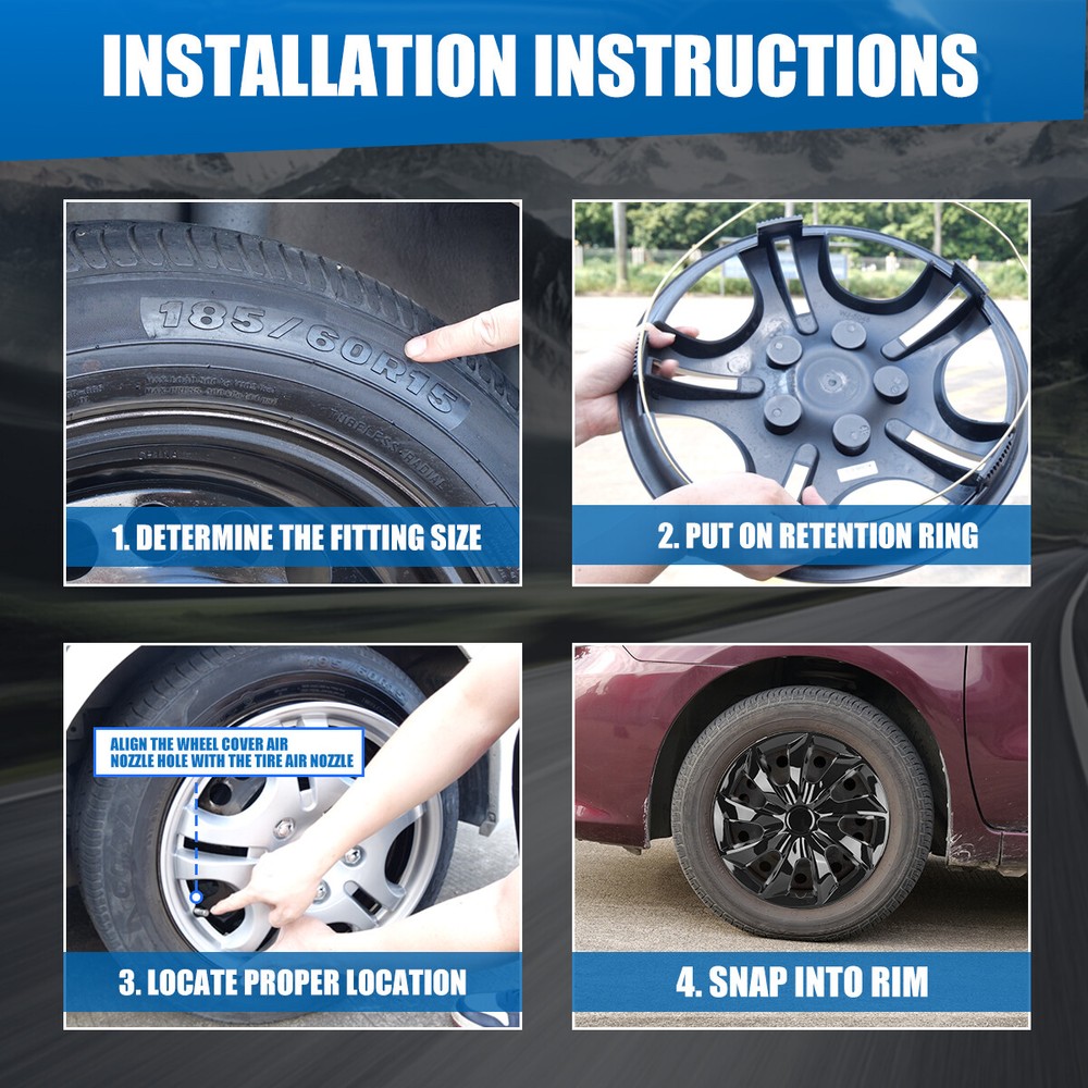 Head Lights Tail Lights Fog Lights Turn Signal Bumper Fender Flare Inner Fender Hubcaps Refrigerator Other Items for sale Head Lights Tail Lights Fog Lights Turn Signal Bumper Fender Flare Inner Fender Liners Portable Refrigerator Universal Set Of 4 16" Black Lacquer Wheel Covers Snap On Hub Caps Fit R16 Tire Features: Universal Fit - Design for 16" wheel hubs. Please know that and check your wheel before purchase to ensure fitment. Protect Your Wheels - Keep your vehicle looking sleek and new with these universal-fit hubcaps that offer reliable protection against scratches, dings, and other types of damage. Durable - Made from high-quality ABS materials, these hubcaps are built to withstand the rigors of daily use, keep your vehicle looking great for years. Stylish - Upgrade the look of your car or truck with these sleek hubcaps to enhance the appearance of your vehicle. Easy to Install - Designed to fit most standard wheel size, these hubcaps can be quickly and easily snap on your wheels without the need for special tools, making them a great choice for busy vehicle owners. Specification: Type: Wheel Hub Caps Color: Black Compatible Wheel Diameter: 16 inch / R16 Features:Car Wash Safe, Easy to Install, No Tools Required Material: ABS Number in Pack: 4 Wheel Type: Steel Placement on Vehicle: Front, Left, Rear, Right Fit For 2013-2017 CHEVROLET TRAX Steel Wheel 2018-2019 CHEVROLET TRAX Steel Wheel 2009-2013 TOYOTA COROLLA 16" Steel Wheel 2014-2016 TOYOTA COROLLA 16" Steel Wheel 2017-2019 TOYOTA COROLLA 16" Steel Wheel 2020-2024 TOYOTA COROLLA SEDAN 16" Steel Wheel 2023-2024 TOYOTA COROLLA HYBRID 16" Steel Wheel 2002-2006 TOYOTA CAMRY 16" Steel Wheel 2007-2011 TOYOTA CAMRY HYBRID Steel Wheel 2007-2011 TOYOTA CAMRY Steel Wheel 2012-2014 TOYOTA CAMRY Steel Wheel 2012-2014 TOYOTA CAMRY HYBRID Steel Wheel 2015-2017 TOYOTA CAMRY Steel Wheel 2015-2017 TOYOTA CAMRY HYBRID Steel Wheel 2018-2024 TOYOTA CAMRY Steel Wheel 2018-2022 TOYOTA CAMRY HYBRID Steel Wheel 2004-2010 TOYOTA SIENNA Steel Wheel 2016-2018 TOYOTA YARIS SEDAN/YARIS iA 16" Steel Wheel 2020-2020 TOYOTA YARIS HATCHBACK 16" Steel Wheel 2011-2018 VOLKSWAGEN JETTA/GLI SEDAN 16" Steel Wheel 2009-2014 VOLKSWAGEN JETTA/GOLF WAGON 16" Steel Wheel 2005-2010 VOLKSWAGEN JETTA SEDAN GEN 5 16" Steel Wheel 2010-2014 VOLKSWAGEN GOLF HATCHBACK 16" Steel Wheel 2010-2014 VOLKSWAGEN GTI 16" Steel Wheel 2007-2012 NISSAN SENTRA S,S FE+ Model 16" Steel Wheel 2011-2017 NISSAN LEAF Steel Wheel 2013-2019 NISSAN SENTRA Steel Wheel 2009-2012 NISSAN ALTIMA SEDAN Steel Wheel 2009 NISSAN ALTIMA COUPE Steel Wheel 2013-2018 NISSAN ALTIMA SEDAN Steel Wheel 2019-2023 FORD TRANSIT CONNECT WAGON Steel Wheel 2019-2022 FORD TRANSIT CONNECT VAN Steel Wheel 2008-2010 CHRYSLER GRAND CARAVAN/TOWN & COUNTRY 16" Steel Wheel 2011-2016 DODGE GRAND CARAVAN 16" Steel Wheel 2011-2013 DODGE JOURNEY 16" Steel Wheel 2019-2021 HONDA CIVIC SEDAN 16" Steel Wheel 2019-2022 NISSAN ALTIMA Steel Wheel 2018-2022 NISSAN LEAF Steel Wheel 2017-2022 NISSAN ROGUE SPORT/QASHQAI Steel Wheel 2020-2023 NISSAN SENTRA Steel Wheel 2017-2023 SUBARU IMPREZA SEDAN Steel Wheel 2017-2023 SUBARU IMPREZA WAGON Steel Wheel 2015-2022 RAM PROMASTER CITY CARGO VAN Steel Wheel 2015-2022 RAM PROMASTER CITY PASSENGER VAN Steel Wheel 2014-2023 RAM PROMASTER CARGO VAN Steel Wheel 2014-2018 RAM PROMASTER CHASSIS CAB/CUTAWAY Steel Wheel 2011-2017 NISSAN QUEST Steel Wheel 2002-2004 NISSAN ALTIMA Steel Wheel 2005-2006 NISSAN ALTIMA Steel Wheel 2007-2008 NISSAN ALTIMA SEDAN Steel Wheel 2008-2008 NISSAN ALTIMA COUPE Steel Wheel 2005-2010 CHEVROLET COBALT 16" Steel Wheel 2019-2021 HONDA CIVIC SEDAN 16" Steel Wheel 2011-2018 VOLKSWAGEN JETTA/GLI SEDAN 16" Steel Wheel 1998-2010 VOLKSWAGEN NEW BEETLE 16" Steel Wheel 1990-1994 PLYMOUTH LASER 16" Steel Wheel 1990-1994 MITSUBISHI ECLIPSE 16" Steel Wheel 1998-2000 CHRYSLER TRUCK CARAVAN/VOYGR/TOWN & COUNTRY 16" Steel Wheel 2000-2001 CHEVROLET LUMINA Steel Wheel 2000-2005 CHEVROLET IMPALA/MONTE CARLO Steel Wheel Package Includes: 4* Wheel Cover Hubcaps Payment Shipping Return About us Contact us Payment Appreciated for the prompt payment, Contact us if bid by mistake, system open unpaid item automatically. Payment must be complete within 3 days from the date you purchase or after the end of auction. Items unpaid within 3 days of the auction end will be forfeited. We reserve the right of cancel the order and re-selling the items. Shipping All shipment will ship by UPS or USPS . All items will be ship within 1 working days , and we will ship out all orders as soon as possible after payment verified, please allow up to 1-4 business days for delivery. CANADA & International customers please note: your government might charge a duty tax (brokerage fees). We do not responsible for any custom duty or import tax. Why Choose the US Stock? 1. Us Local Shipping, No Extra Customs Cost to the US. 2. Fast Delivery: 1-4 Working days Delivery. 3. Best After-Sales Service!!! Return The buyer is responsible for all return shipping including a result of customer error or defective item. 1) If you received an incorrect, damaged, defective, or item not as described, contact us for full refund or replacement on our cost. 2) If you want to return the item, please contact us within 60 days after package received. Return products must also be in its original condition: including box, packaging and all other accessories. About us We are the best auto parts, we have been pursuing excellence, continuous exploration as the slogan, let customer satisfaction is our purpose! We adhere to the United States local delivery, one year warranty! Welcome! Contact us How Should You Contact us? Please Read The Item Description And See if The item Fits Your Vehicle Exactly. If You Found Any questions, Feel Free to email us by "Ask a question" Our Office Hours Are Monday - Friday 8:00am - 5:00pm PST / 11:00am - 8:000pm ET, We Do Not Answer Any E-Mails On Weekend, And We Will Reply All E-Mails In The Order It Was Receive. All E