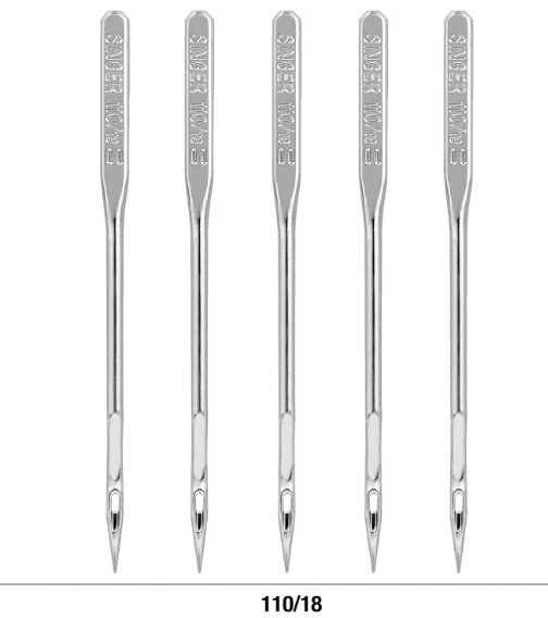 Set of 5 heavy duty sewing machine needles, size 110/18 Heavy duty needles in size 110/18 are necessary for heavyweight fabrics such as denim, upholstery, wool, corduroy or leather Made of high quality cold forged steel to prevent needle breakage and skipped stiches and conveniently developed with larger needle eyes and t-shaped needle heads for an easier sewing experience All singer needles are color coded for easy recognition during your sewing projects; top color corresponds to the needle type and the bottom color corresponds to the needle size Compatible with all quality household domestic sewing machines, including SINGER, Brother, Kenmore, Janome, Juki, and Bernina brands.