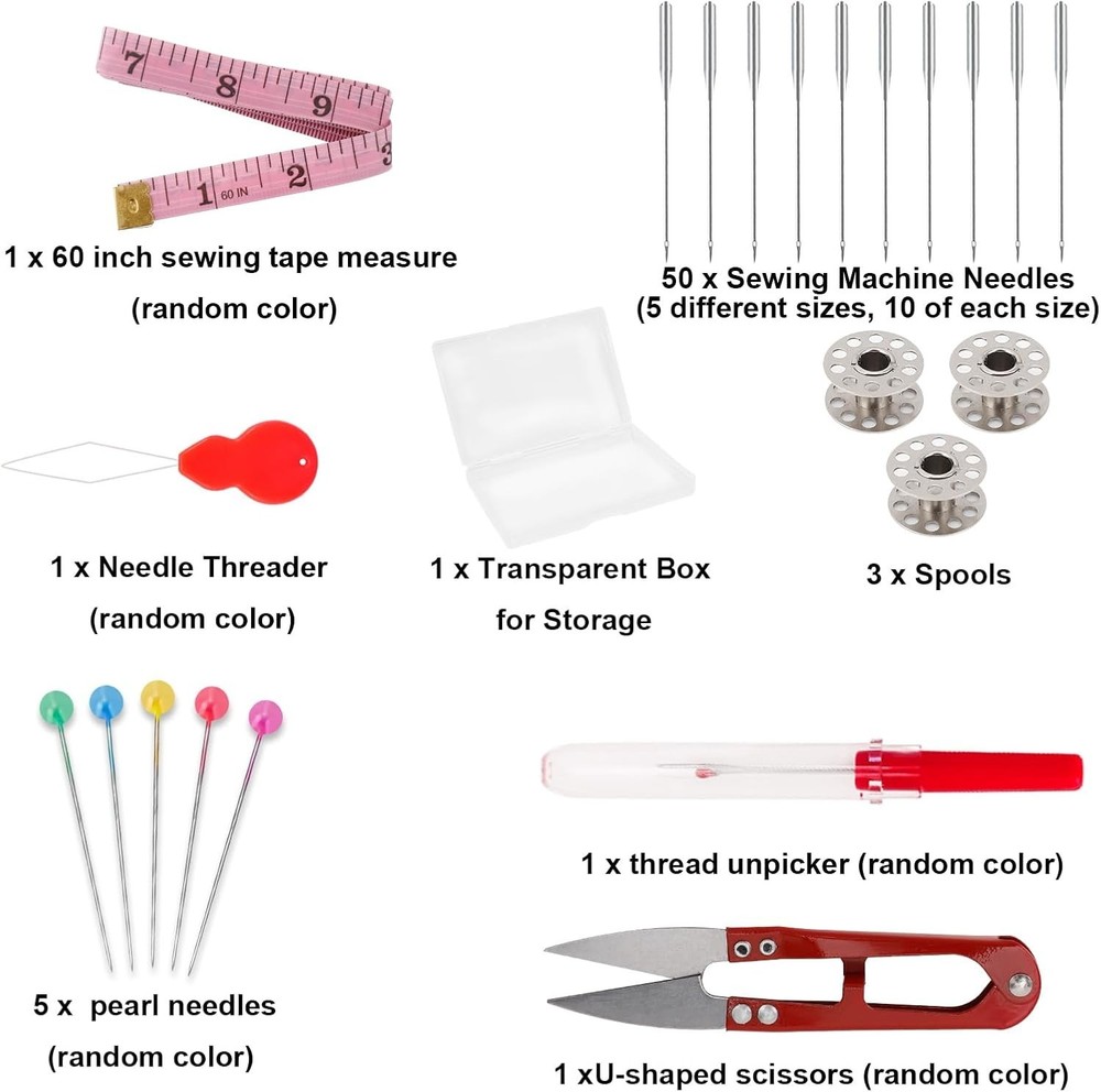 This sewing machine needle set is a fantastic deal! It comes with 50 high-quality needles in five sizes, plus handy extras like thread, a needle threader, scissors, and more—all neatly stored in a clear box. The needles work smoothly with major brands like Singer and Brother, making them perfect for various fabrics. The added accessories are a nice bonus, making this set a must-have for any sewing enthusiast. Great value and super convenient!