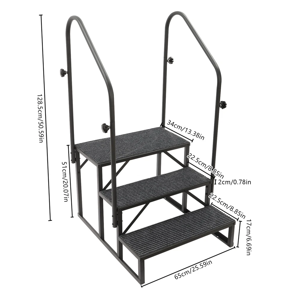 Specifications Color: Black Material: Q235 Steel, PU Process: Bending, Welding, Polishing, Acid Pickling, Phosphating, Bake Painting Mount Type: Free Standing/Ground Fixing Assembly Required: Yes Each Step Height: 17cm/6.69in Steps Total Height: 51cm/20in Product Total Height: 1.285m/4.22ft The First Step Size: 65*22.5*2cm/25.59*8.86*0.79in The Second Step Size: 65*22.5*2cm/25.59*8.86*0.79in The Third Step Size: 65*34*2cm/25.59*13.39*0.79in Each Step Load Bearing Capacity: 204kg/450lbs Packaging Size: 86*56.5*12cm/33.85*22.24*4.72in Gross Weight: 18.7kg/41.22lbs Net Weight: 15.65kg/34.5lbs Package Included 1*RV Step 1*English Assembly Diagram Other Needed Accessories 💖welcome to my store💖 Description The Rv Step Made of Q235 Steel Provides a Solid Step for You and Your Family to Get up and down Higher with Ease. It Has a Solid Frame with a Weight Capacity of up to 450 Lbs per Level, so You Can Use It with Confidence. Meanwhile, the Non-slip Mats and the Handrails on Both Sides Prevent Slipping While Providing a Boost to Get on and off the Step. Key Features Build to Last: the Product Is Made of Q235 Steel and Is Processed by Acid Pickling, Phosphating, and Bake Painting, Making the Product Resistant to Corrosion and Rust, Giving It High Hardness and Long Service Life. Strong Structure: the Parts Are Connected with Strong Screws, and the Strong Triangular bar Design of the Steps Provides the Product with a High Load-bearing Capacity(450 Lbs for Each Step), so You Can Use It with Confidence. Safety Guarantee: the Non-slip Mat Makes Every Step You Take Safe and Worry-free , Effectively Avoiding the Danger of Slippery Feet. Proper Height: the Product Comes with 3 Steps of 6.69 Inches Height for Each Level, Which Makes Climbing Upwards Easier and less Strenuous, Providing Great Convenience for Your Family, Especially the Elderly and Children. User-friendly Design: the Two Handrails save Effort and Ensure Safety When You Are Going down or up. Simple Installation: with Complete Accessories and the English Assembly Diagram, You Can Install the Product with less Time and Effort. Easy to Clean: Thanks to the Simple Structure and Smooth Surface, You Can Easily Wipe It Clean with a Damp Cloth. Customer Service: We Aim to Provide Quality Products and Services. If You Have Any Problems, Please Feel Free to Contact Us. We Will Reply and Solve the Problem for You As Soon As Possible. Details Pre-drilled Holes: These Holes Allow You to Assemble the Product More Easily, and the Holes in the Feet Allow You to Secure It to the Ground for a More Stable Stand. Rounded Edges: They Bring a Beautiful Appearance While Protecting Your Hands from Getting Scratched During Installation. Application It Is Suitable for Rvs, Travel Trailers, Mobile Homes, Pools, Hot Tubs, Spas, Porches, and Bunk Beds, and Is Ideal for People with Muscle Weakness, Poor Balance, Poor Knee Support, and Limited Mobility. Specifications Color: Black Material: Q235 Steel, Pu Process: Bending, Welding, Polishing, Acid Pickling, Phosphating, Bake Painting Mount Type: Free Standing/Ground Fixing Assembly Required: Yes Each Step Height: 17cm/6.69in Steps Total Height: 51cm/20in Product Total Height: 1.285m/4.22ft The First Step Size: 65*22.5*2cm/25.59*8.86*0.79in The Second Step Size: 65*22.5*2cm/25.59*8.86*0.79in The Third Step Size: 65*34*2cm/25.59*13.39*0.79in Each Step Load Bearing Capacity: 204kg/450lbs Packaging Size: 86*56.5*12cm/33.85*22.24*4.72in Gross Weight: 18.7kg/41.22lbs Net Weight: 15.65kg/34.5lbs Package Included 1*Rv Step 1*English Assembly Diagram Other Needed Accessories Notes 1. Please Check the Size Carefully Before Ordering. 2. Please Allow the Slight Color Difference Caused by the Shooting Light and 1-3cm Error Due to Manual Measurement, and Make Sure You Do Not Mind Before You Order. Payment Delivery details Terms of sales About us Contact us Payment We accept ebay payment 。 Fees such as import duties, taxes are not included in the item price or shipping costs. These charges are the buyer's responsibility. Delivery details Shipping: 2-9 working days to: USA Terms of sales We maintain high standards of excellence and strive for hundred percent customer satisfaction. Feedback is very important to us. We hope that you contact us immediately before you give neutral or negative feedback, so that we can address your concerns. It is impossible to address issues if we do not know about them! About us Your satis faction is our ultimate goal. We work hard to earn your trust and future business. Our certified technicians have tested each item before shipping. The unit comes with 1 year limited warranty on all manufacturing defects. a) If you receive a defective item, you may return it or ask for a discount. Please contact us within 14 days after you receive the package. b) What you returned must be intact and in its original packaging as re? u. Customer is responsible for shipping costs of the returned item. c) We will cover the cost of shipping back t with the shipping rate indicated in the registration page. We will send you a new unit or refund the full payment you paid. Thank you. Contact us Business Hour Business Hour: Monday To Friday: 8:30 AM to 5:00 PM (Beijing China time) Due to time zones, our reply to your questions may not be immediately. But within above working time, we will reply your email within 24 hours. If it's non-workdays, please kindly be patient and wait till Monday. Please contact us with ebay message. Please feel free to contact us if you have any questions. Monday To Friday: 8:30 AM to 5:00 PM (Beijing China time) Due to time zones, our reply to your questions may not be immediately. But within above working time, we will reply your email within 24 hours. If it's non-workdays, please kindly be patient and wait till Monday. Please contact us with ebay message. Please feel free to contact us if you have any questions. Brand Unbranded Manufacturer Part Number N/A Part Type Ladder Country/Region of Manuf