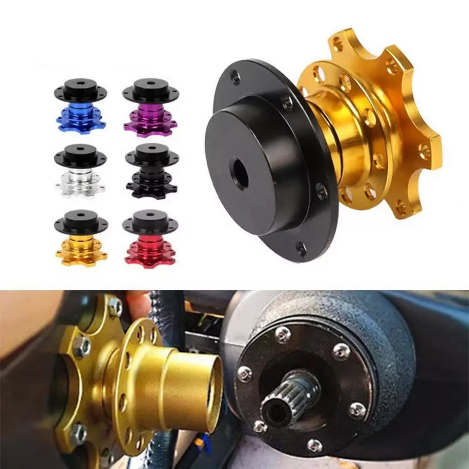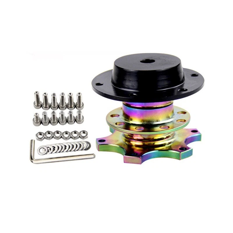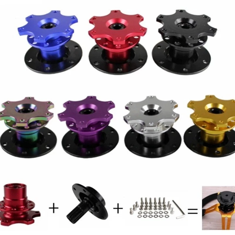 feature: The Bolt-On quick release device allows you to quickly remove the steering wheel. This is a quick release bolt and requires the installation of a vehicle-specific hub adapter. The quick release device is a 6-bolt style, suitable for any steering wheel. No welding is required. No need for delicate keys Very high quality durability and reliability Designed to be installed between your boss kit and steering wheel All screws/bolts needed to connect it to the steering wheel are included. Dimensions and materials: Material: aluminum alloy Color: red, blue, black, gold, silver (send one at random) Package Included: 1*Quick release adapter 6*Long decoration screw 6*short assembly screw 12*nut 12*washer 1*wrench