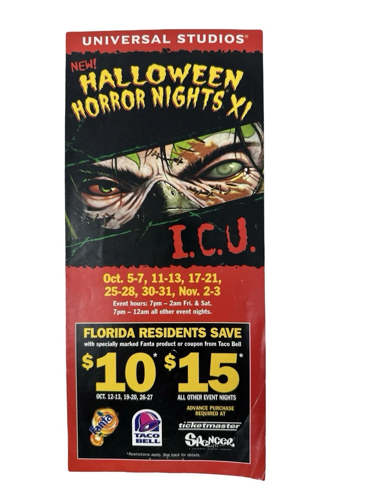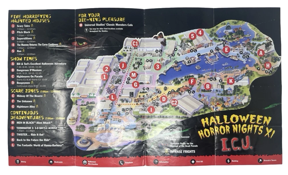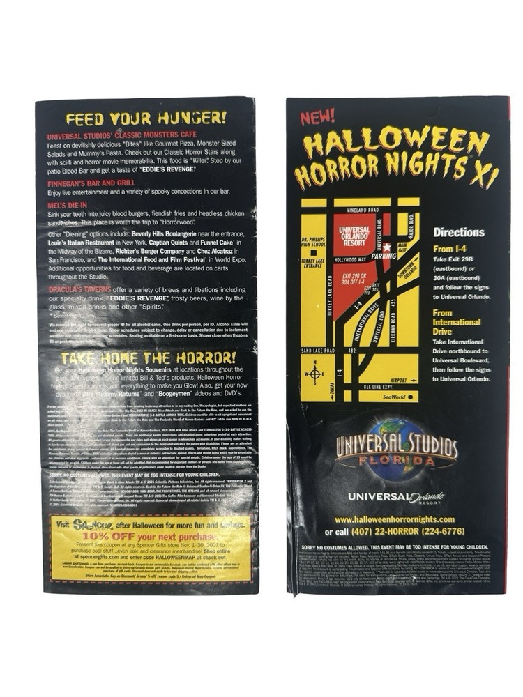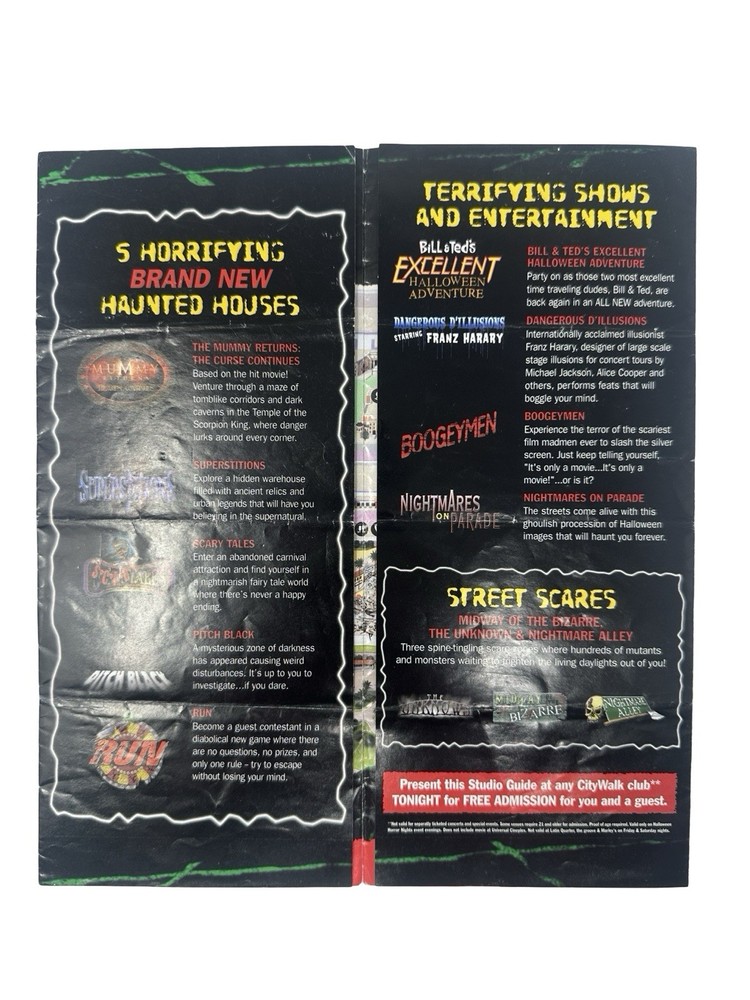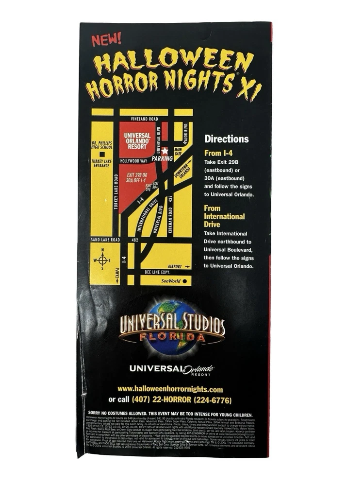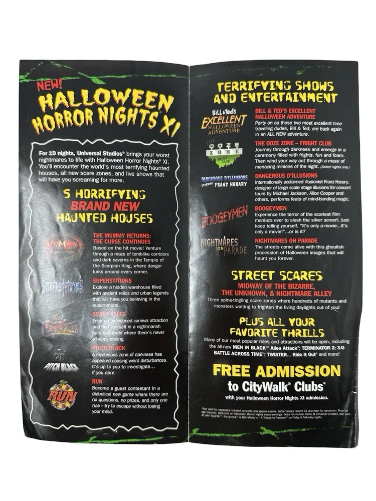 Universal Studios Halloween Horror Nights XI 2001 Event Guide Map ICU Post-9/11