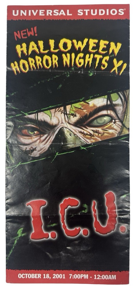 Offered here is an original pair of Halloween Horror Nights XI (2001) park materials from Universal Studios Florida , including: • HHN XI Event Guide / Fold-Out Park Map • Promotional Halloween Horror Nights XI guide flyer These were distributed during the event and were typically used by guests navigating the park and attractions, meaning most examples were discarded after the event. Surviving guides from this era are increasingly scarce. Halloween Horror Nights XI is considered one of the most historically unique years in the event’s history . The event took place only weeks after the September 11, 2001 attacks , and Universal Studios had to quickly revise the tone, marketing, and theme of the event before opening in October. The event theme was “I.C.U.” , and the guide highlights many of the attractions from that year including: Haunted Houses The Mummy Returns: The Curse Continues Pitch Black Superstitions Scary Tales Run Shows & Entertainment Bill & Ted’s Excellent Halloween Adventure Dangerous D’Illusions Boogeymen Nightmares on Parade Scare Zones Midway of the Bizarre The Unknown Nightmare Alley The guide also includes a full event park map of Universal Studios Florida , attraction locations, show schedules, and period promotions featuring brands such as Fanta, Taco Bell, Ticketmaster, and Spencer Gifts . Because Halloween Horror Nights guides were temporary event materials meant for use during the night , they were rarely preserved. As a result, early HHN event guides have become collectible pieces of Universal Studios and theme park history . Collector Note This guide contains an interesting historical detail tied to Halloween Horror Nights lore. Inside the guide a specialty drink is listed as “Eddie’s Revenge.” The character Eddie was originally planned to be the main icon for Halloween Horror Nights XI. However, following the events of September 11, 2001, Universal Studios significantly toned down the event and removed most references to Eddie from marketing materials before the event opened. Small traces of the character remained in some printed materials produced earlier, including references such as the “Eddie’s Revenge” drink shown in this guide. Details like this make HHN XI guides particularly interesting to collectors of Halloween Horror Nights history. Features Original Halloween Horror Nights XI event guide Year: 2001 Location: Universal Studios Florida Theme: I.C.U. Includes: Fold-out park map and event guide Promotional HHN XI flyer Highlights: haunted houses, scare zones, show schedules Features attractions based on: The Mummy Returns, Pitch Black, and more Period promotions: Fanta, Taco Bell, Ticketmaster, Spencer Gifts Vintage Universal Studios theme park collectible Condition: used park guide with fold lines and handling wear Condition Summary Used vintage condition with visible fold lines, creases, and bends from normal park use. No major tears or missing sections observed. Graphics remain clear and the guide appears complete. Please review all photos carefully as they are part of the description. Shipping & Returns Free US Shipping 30 day returns (must be returned in original condition)