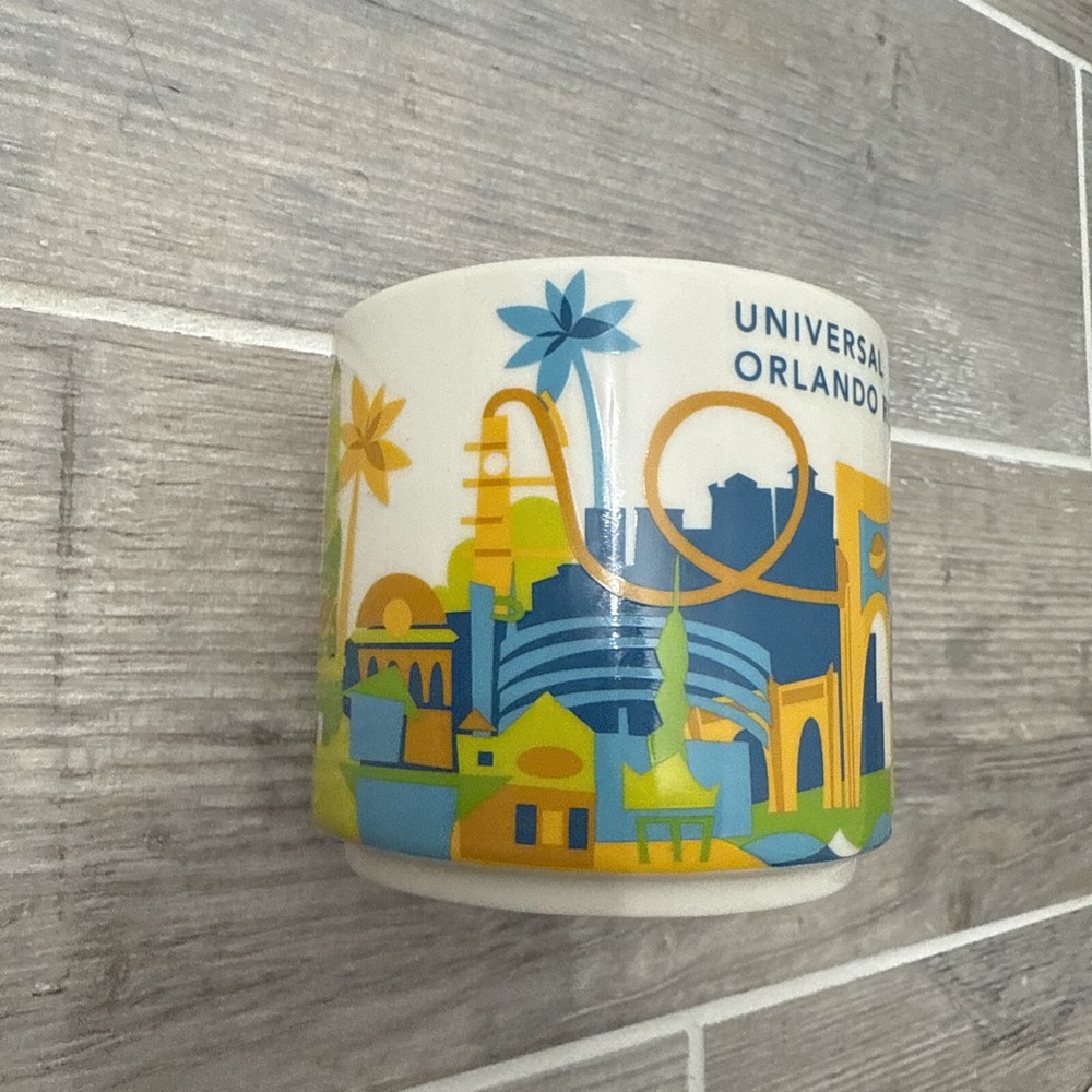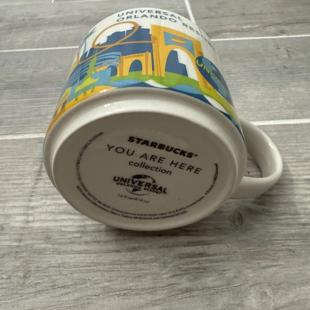 The "UNIVERSAL STUDIOS ORLANDO RESORT Starbucks You Are Here Series 2016 Retired Mug" is a collectible mug from Starbucks featuring a multi-color design. Created in 2016, this original mug is part of the Coffee & Tea theme and is now retired from the You Are Here Series collection. The mug likely showcases iconic landmarks or elements associated with Universal Studios Orlando Resort, making it a sought-after item for Starbucks and theme park enthusiasts alike.