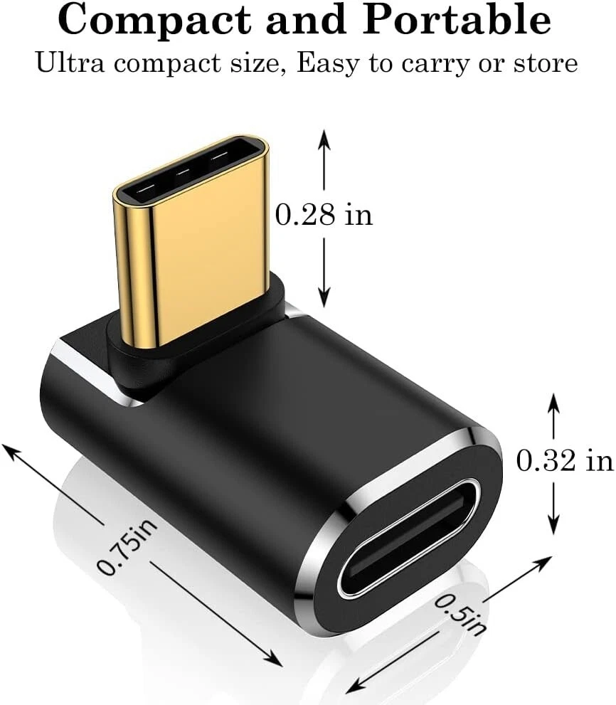 Universal USB C 90-Degree L Shape Adapter 2-Pack for MacBook, Steam Deck & More ‹ › ‹ › ‹ › ‹ › ‹ › ‹ › ‹ › ‹ › ‹ › Universal USB C 90-Degree L Shape Adapter 2-Pack Designed for MacBook, Steam Deck & More Protect Your Device with 90-Degree Design Say goodbye to loose charging ports! This 90-degree USB C adapter keeps your cables securely in place, preventing unnecessary wiggle and strain. Prolong the life of your device while enjoying seamless functionality. Cutting-Edge USB4 Performance Lightning-fast 40Gbps data transfer Powerful 100W charging capabilities Breathtaking 8K@60Hz video output Fully compliant with USB4 and backward compatible Exceptional Durability in a Compact Design Constructed with a premium aluminum alloy shell for unmatched durability Lightweight and portable design Rigorous testing with over 10,000 plug-and-unplug cycles Universal Compatibility Perfectly compatible with: Steam Deck ROG Ally Legion Go Nintendo Switch MacBook, iMac, iPad Laptops, tablets, smartphones Most USB-C or Thunderbolt 4/3 devices. Effortless Plug-and-Play Functionality No installation required! Simply plug it in for instant connectivity Perfect for charging, data transfer, or streaming. Why Choose the Universal USB C 90-Degree Adapter? Tired of loose cables and damaged charging ports? The Universal USB C 90-Degree Adapter is your ultimate solution! Designed to securely manage your USB-C cables with a flexible 90-degree angle, this adapter reduces strain on your device’s USB-C port, prolonging its lifespan while maintaining optimal functionality. Don’t let poor connectivity hinder your productivity or entertainment - enhance your experience with our stylish and resilient adapter! Note: May not fit all cases, especially thicker protective cases. Please check compatibility before purchase. Package Includes: USB C 90 Degree Adapter * 2 Shipping Free & Fast Shipping - We offer free shipping to most of the USA with a normal delivery time of 3-7 days. However, due to the current situation, additional delivery time (up to 3 weeks) may be required for some items. Alternative Carriers - We may use alternative carriers (e.g. USPS, FedEx, UPS, etc.) to ensure your package arrives safely and on time. Due to the use of multiple carriers, we are unable to provide a tracking number automatically. Handling Time - Orders are processed and shipped within 1-2 business days of receiving cleared payment. Shipping Restrictions - Shipping to Alaska, Hawaii, Puerto Rico, Guam, and other US territories may incur shipping charges or delivery restrictions. Please contact us before ordering, or your order can be refunded/cancelled. State Restrictions - There may be restrictions based on your state of purchase. For example, certain items may not be shipped to California due to state regulations. Contact for Tracking Updates - If you require tracking updates or have any concerns about the delivery of your order, please feel free to contact us, and we will be happy to assist you. Return 30-Day Hassle-Free Returns - We want you to be completely satisfied with your purchase. If you are not, you can return the item within 30 days of receiving it for a full refund or exchange. Easy Return Process - To start a return, simply contact us and we will provide you with a prepaid return shipping label and detailed instructions. Restocking Fee - There are no restocking fees for returns. However, the buyer is responsible for return shipping costs if the return is not due to a seller's error. Refund Processing Time - Refunds will be processed within 5 business days of receiving the returned item in its original condition. Payment We accept all major credit cards, PayPal, and Apple Pay for your convenience. Your payment information is secure and encrypted to ensure a safe and seamless transaction. Please complete your payment within 3 days of purchase to avoid any delays in shipping. Feedback Your feedback is extremely important to us. We strive to provide the best products and customer service possible. If you are satisfied with your purchase, please take a moment to leave us a positive review. If you have any concerns or issues with your order, please contact us before leaving negative feedback. We are committed to resolving any problems and ensuring your satisfaction. Contact Us If you have any questions or concerns, please feel free to reach out to our customer support team. You can contact us through the eBay messaging system. We are available Monday to Friday, 9:00 am to 5:00 pm EST, and we will do our best to respond to your inquiry within 24 hours. Buy it now and enjoy a pleasant shopping experience! UPC: Not Set Item Height: USB C Adapter Item Length: USB C Adapter Item Weight: 0.352 Item Width: USB C Adapter Unit Quantity: 2 Connectivity: USB-C Items Included: USB C 90 Degree Adapter * 2 Compatible Brand: Universal Compatible Model: For Steam Deck,ROG Ally,MacBook,iPad,Nintendo Switch,For ROG Ally,For MacBook,For iMac,For iPad,For Nintendo Switch,For Legion Go,For PC,For Laptop,For Tablet,For Smartphone,For Game Consoles Design/Finish: Aluminum Features: Fast Charge,Lightweight,Plug-and-Play,90-Degree Design,Compatible with USB4,Backward Compatible,40Gbps Data Transfer,100W Charging,8K Video Output,Durable Design,Portability Brand: Unbranded Type: USB-C Adapter Cable Length: Not Set Number of Ports: 1 Color: Black Material: Aluminum MPN: Not Set Version: 1 Country/Region of Manufacture: Not Set Manufacturer Warranty: Not Set Unit Type: oz Personalize: Not Set