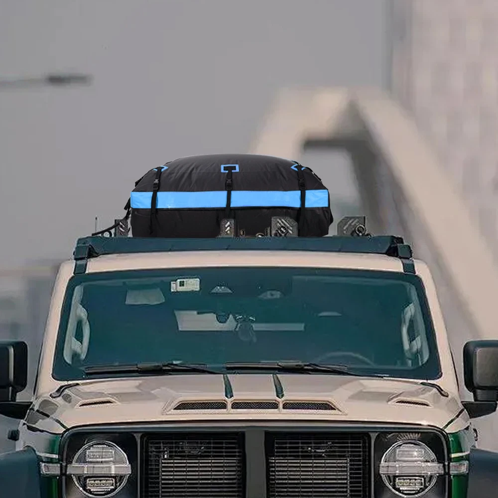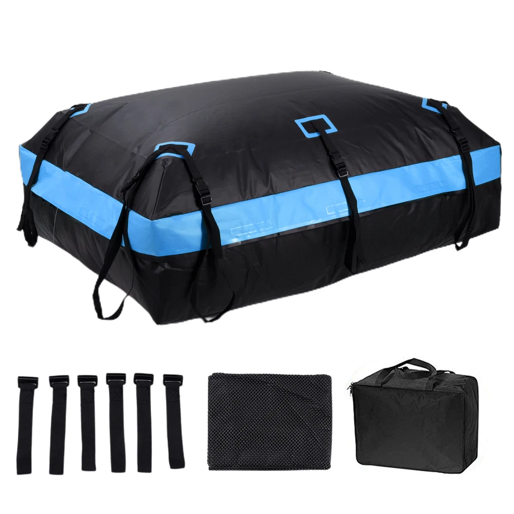 High Capacity Design: Experience the ease of hauling your must-haves with our Car Rooftop Cargo Carrier's notable 28 cubic feet capacity, which fits seamlessly onto SUVs with or without roof racks, raised side rails, cross bars or none at all. Waterproof Design: Engineered with a waterproof design, our Car Rooftop Cargo Carrier ensures your belongings remain dry and secure, providing protection from scratches while keeping cargo stable. Versatile Storage : Seamlessly carry all your camping gear and luggage with our spacious rooftop cargo carrier, ensuring a hassle-free travel experience. Easy to Use: Carefully crafted to enhance your journey, our Car Rooftop Cargo Carrier is designed to optimize passenger comfort, ensuring a relaxed and enjoyable road trip. Extensive Usage: Our Car Rooftop Cargo Carrier is the perfect multi-usage upgrade for your thrilling road trips, camping, and outdoor travels. With its multi-functional design, take your adventures to the next level. Keep your belongings safe during road trips by using Cargo Bag for Top of Car. Its waterproof design ensures equipment stays dry, while optimizing passenger comfort. Perfect for various freight trucks, the bag is a must-have for your next adventure. Specification: Name: Car Rooftop Cargo Carrier Color: black and blue Waterproof level: waterproof Usage: Outdoor product Applicable models: General Packing List: 28-inch rooftop luggage bag*1 Anti-slip mat*1 Storage bag*1 Door hooks*6