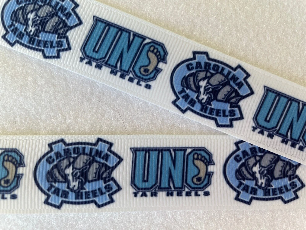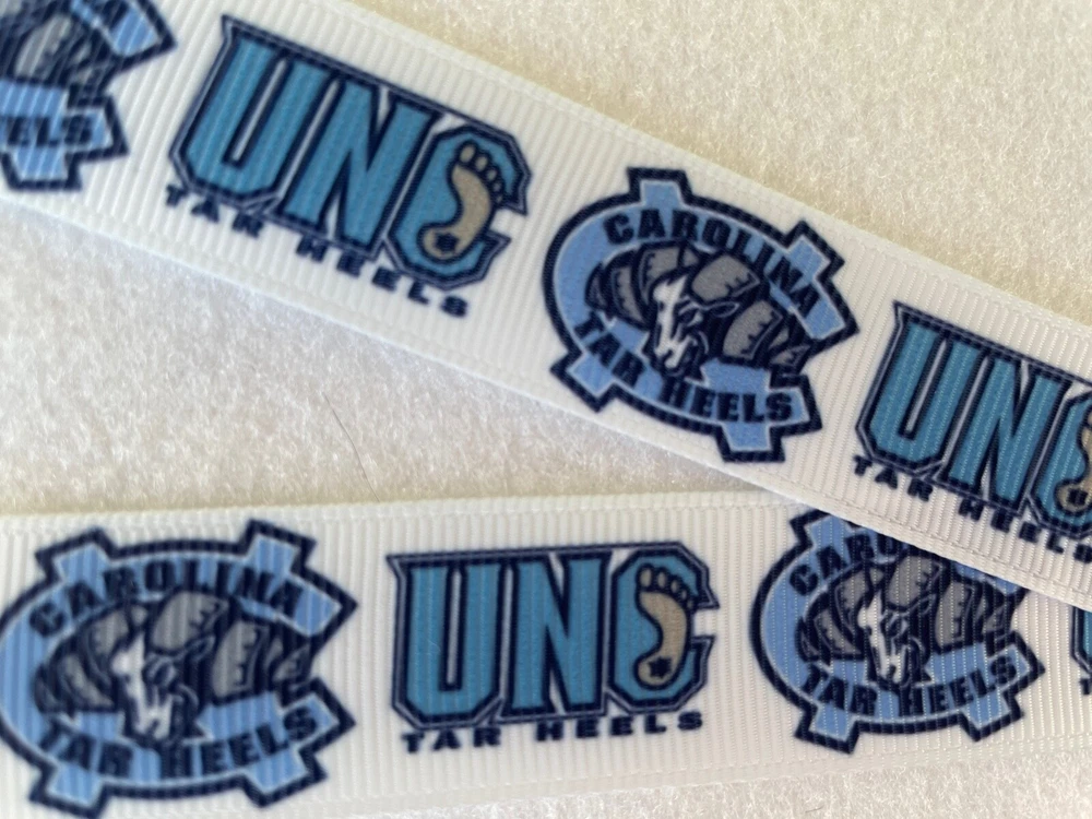 University North Carolina grosgrain ribbon priced by 1,2, 3, 5 or 10 yard lengths. 5/8" 7/8" Polyester Ribbon If purchasing multiple units, the ribbon will come as one continuous piece. Ribbon is printed on one side and white on the reverse. Spend $50 get free shipping on all ribbons! We are available for questions Monday through Friday during business hours for specific questions about any items, shipping and more. E-bay considers a 5 Star feedback standard for all purchases. If for any reason you have any concerns with your purchase(s), please let us know directly and soon after receiving your purchase and we will do our best to work out a solution. Most of our transactions go smoothly as you can see through our great feedback scores however occasionally errors or misunderstandings can occur in our listings so please let us know! Returns and exchanges are accepted however the item must be in the same condition that it was sent. For example it must still have the tags attached and not be worn or laundered. Return shipping is the responsibility of the buyer. All of our packages are tracked domestically and some internationally as well. We combine shipping costs whenever possible so please request an invoice when purchasing multiple items as sometimes the e-bay calculation is higher than our shipping cost and we want to pass the savings back to you. Please make sure that you have your correct address on file with Pay Pal when placing your order. Overnight shipping is available Monday through Thursday if you order in the morning. Please contact us for details. For INTERNATIONAL BUYERS, your purchases are sometimes held at your post office for pick up and additional taxes may be due and payable to them. These additional costs vary by country and it is your responsibility to understand what and when these additional charges may be required prior to purchase.