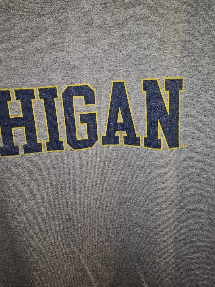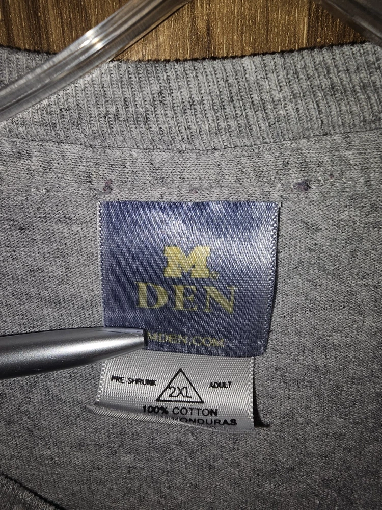 Show your love for the Michigan Wolverines with this stylish and comfortable 2XL men's shirt from Michigan Den. The gray shirt features a bold graphic logo of the team's football program, making it a perfect choice for wearing during the regular season. This officially licensed shirt is made in Honduras and is perfect for any fan looking to add to their collection of sports memorabilia. Whether you're at the game or just out and about, this shirt is sure to show your team spirit. Get yours now!