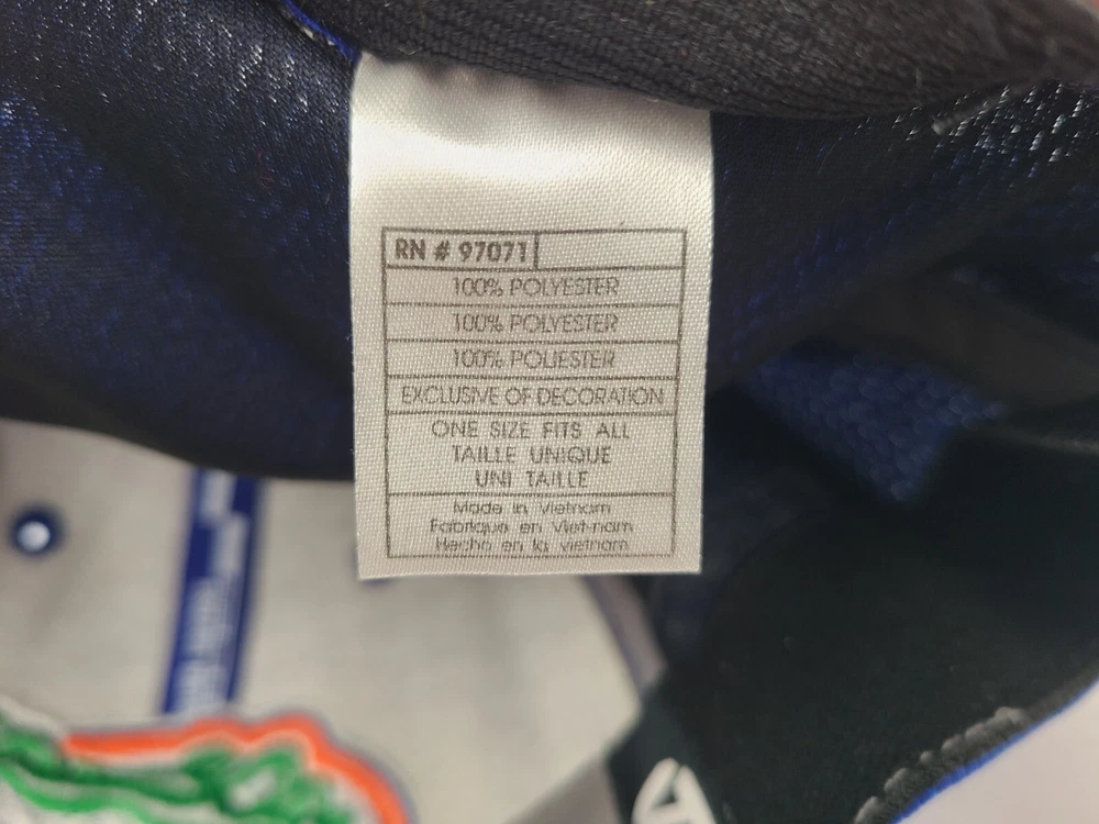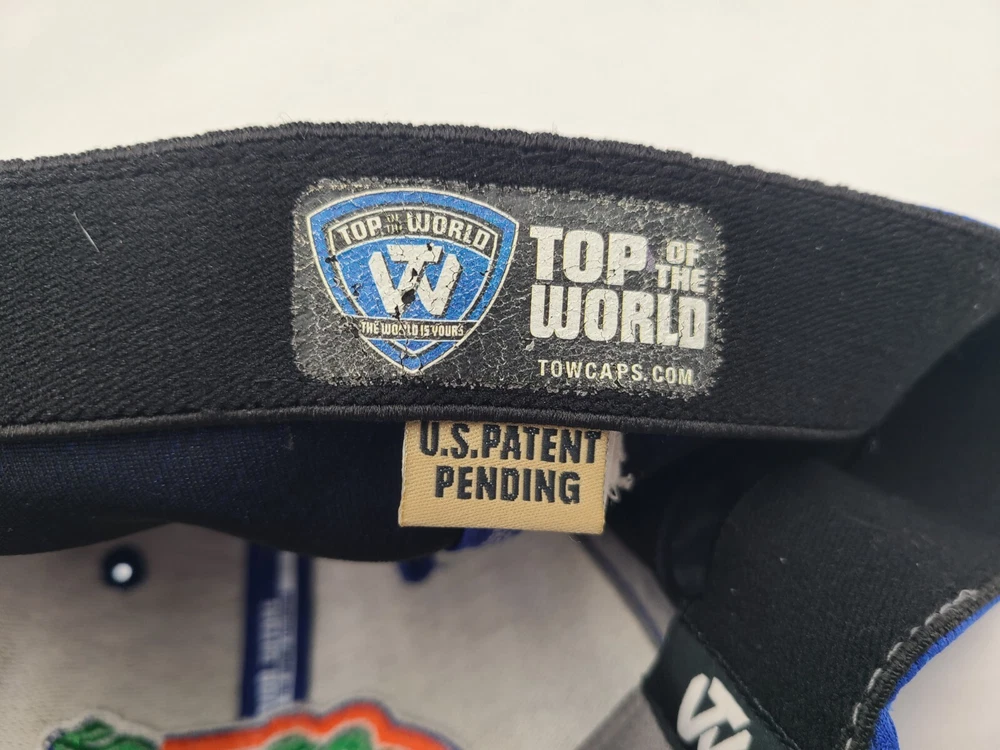 The tag says one size fits all, but it seems best suited for M-L sized heads. Also has some discoloration on the side logo as seen in photos. University of Florida Gators Top of the World Flex Fitted (Seems M-L) Hat Cap. EACH ADDITIONAL HAT PURCHASED IS ONLY $1 ADDED SHIPPING!