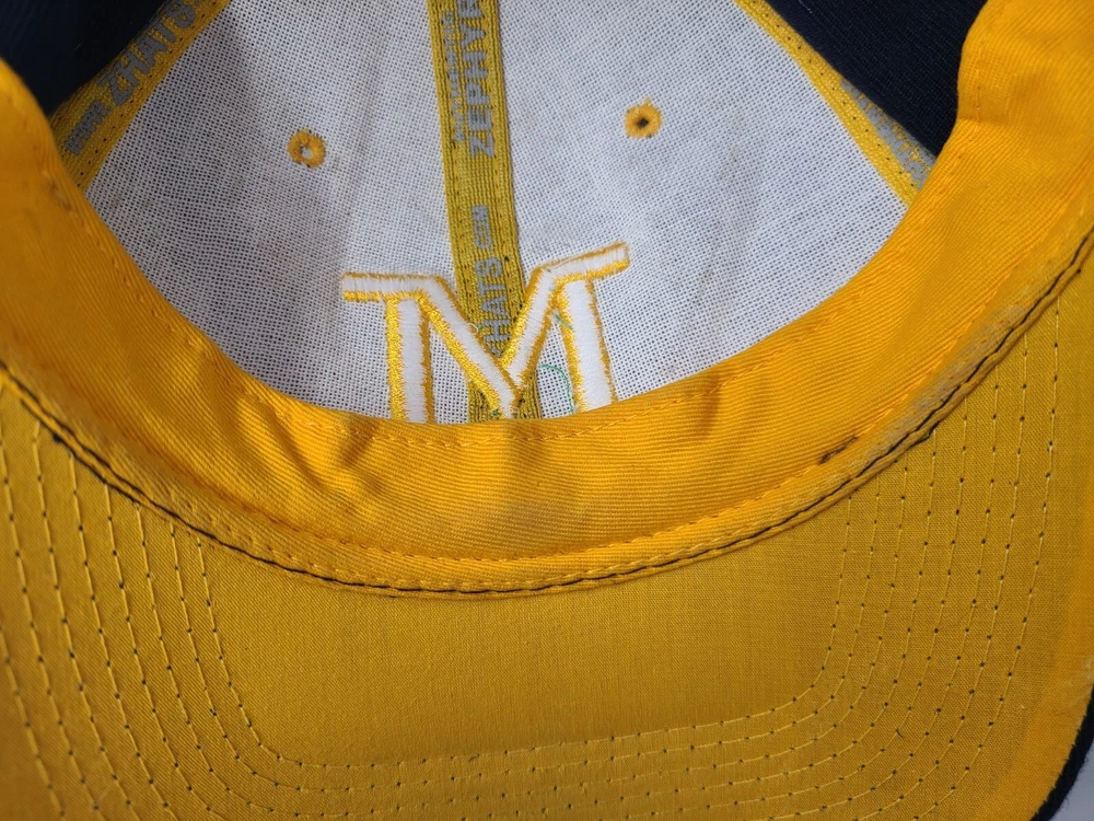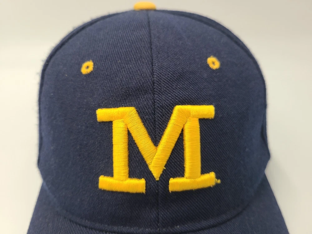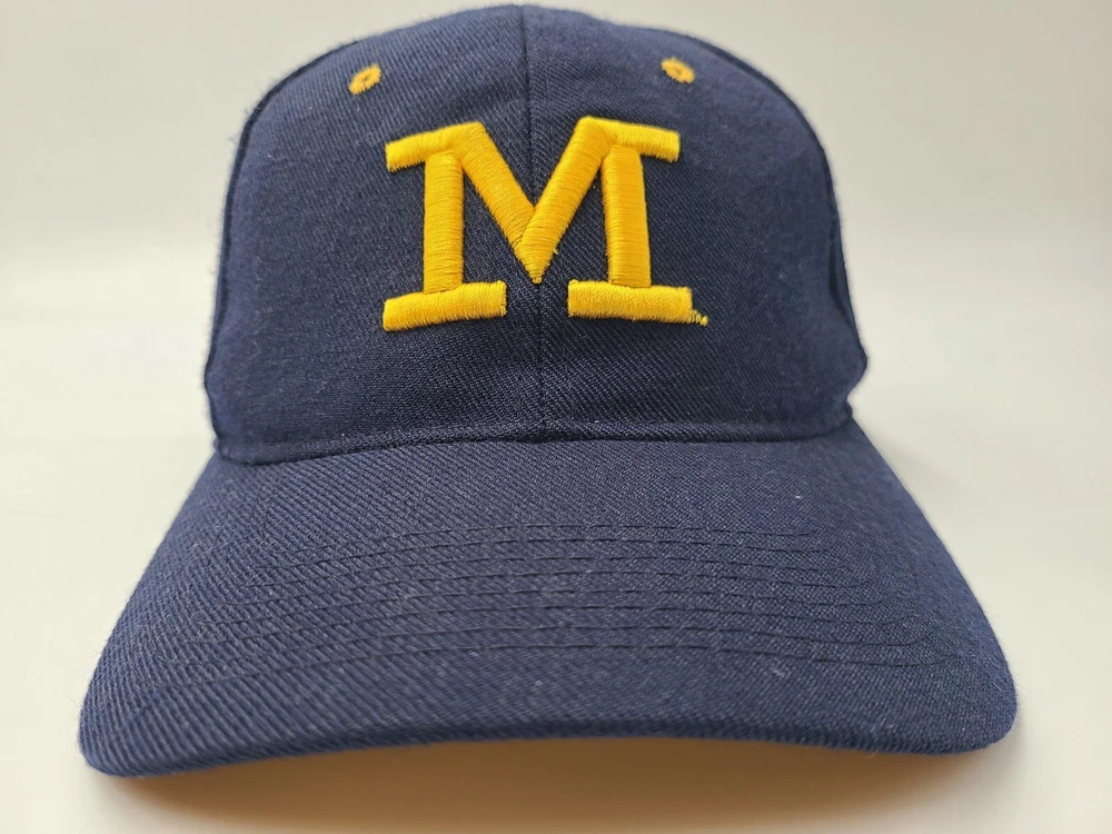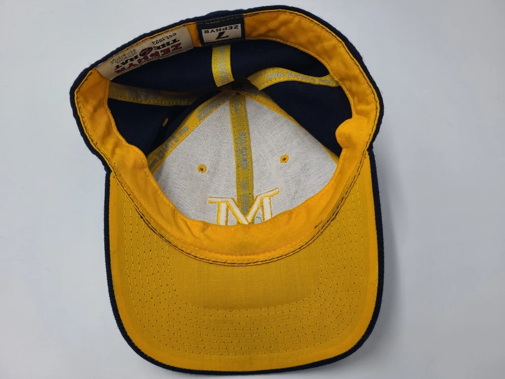 Product: Cap, Hat Sport: Football Gender: Men Color: Blue Country/Region of Manufacture: Unknown Team: Michigan Wolverines Size: 7 Brand: Zephyr