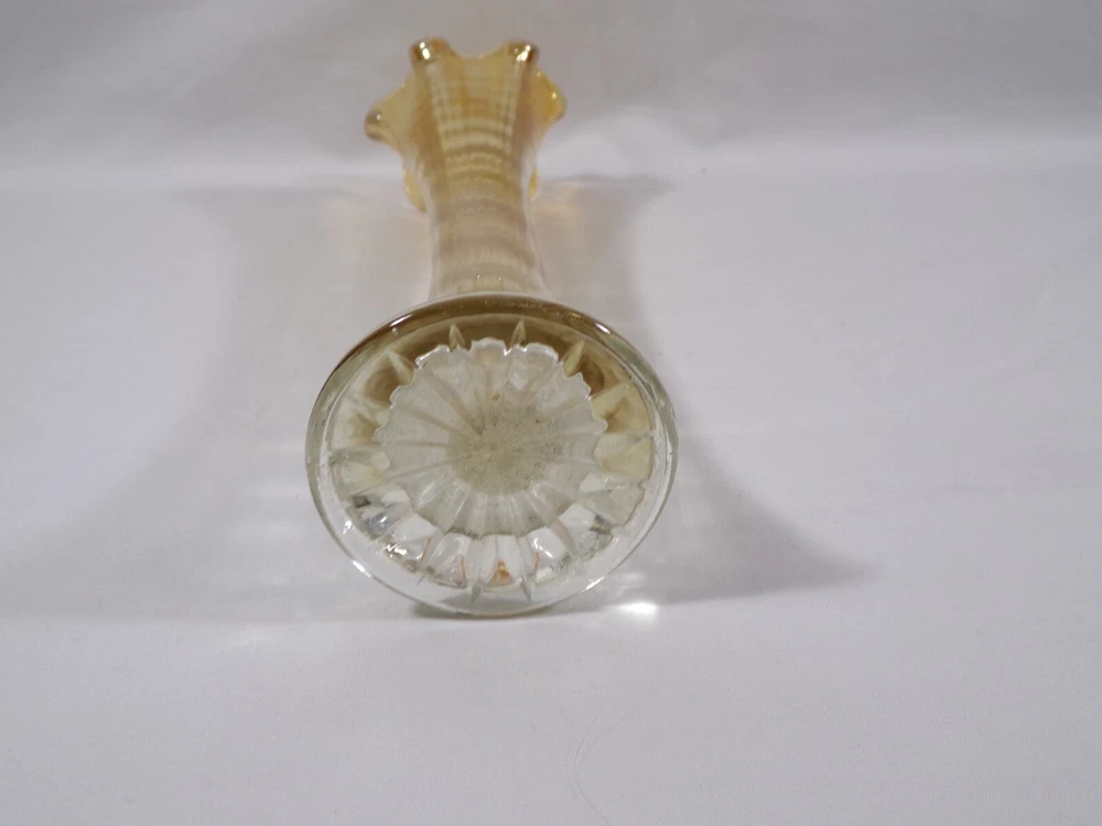 Unmarked Marigold to clear 9 3/4" Ribbed Pulled Loop Swung Vase