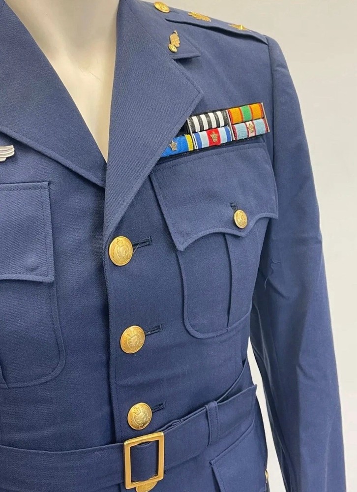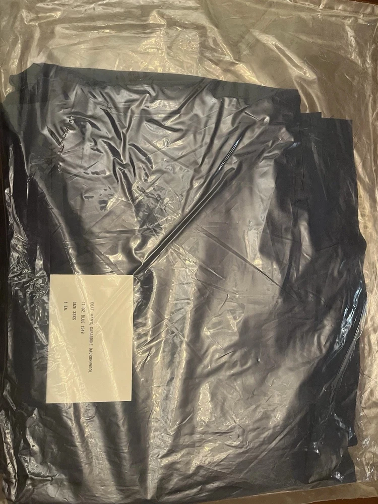 A rare and authentic Imperial Iranian Air Force pilot uniform, accompanied by a matching piece of fabric intended for tailoring a flight hat cover—both items included in a single package. Remarkably, the package remains unopened, exactly as it was originally sealed and packed in the United States over 50 years ago. The jacket was manufactured in the U.S. with four pockets, crafted from the highest quality gabardine fabric, a premium blend of Dacron and wool, tailored by the internationally recognized Bendon Dress Co., known for its exceptional craftsmanship. This was designed to match the prestige of the elite pilots of the Imperial Iranian Air Force. Size: XS (Extra Small) The jacket features only the Air Force branch insignia (wings) on the collar and original buttons. Additional photos shown are for reference only to demonstrate the color and style, as the actual uniform remains sealed in its original packaging. Note: Any chest or shoulder insignia visible in the sample photos do not belong to this jacket. The actual item has no patches or emblems, aside from the collar wings and buttons. Due to the collectible nature and original sealed condition of the package, returns are not accepted. Please purchase thoughtfully.