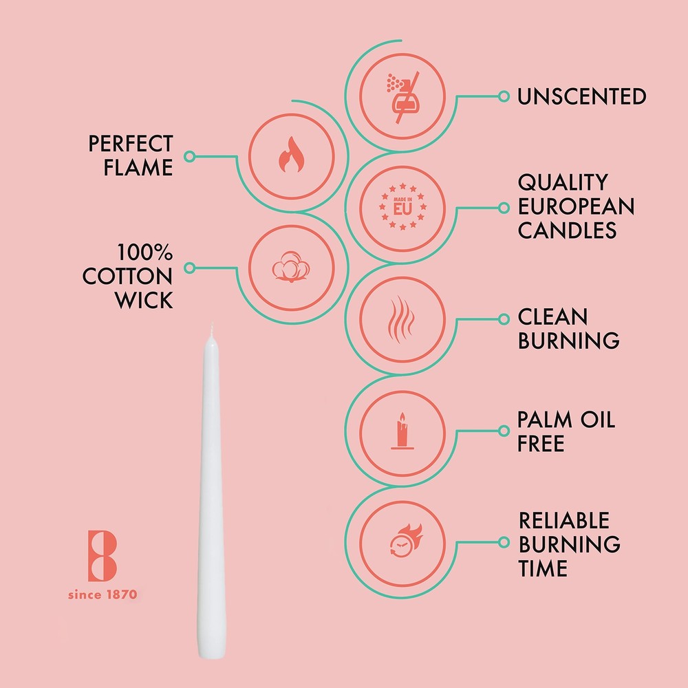 Unscented 10-inch Dinner Candles 10-Pack 8-Hour Burn European Smokeless Premium Quality