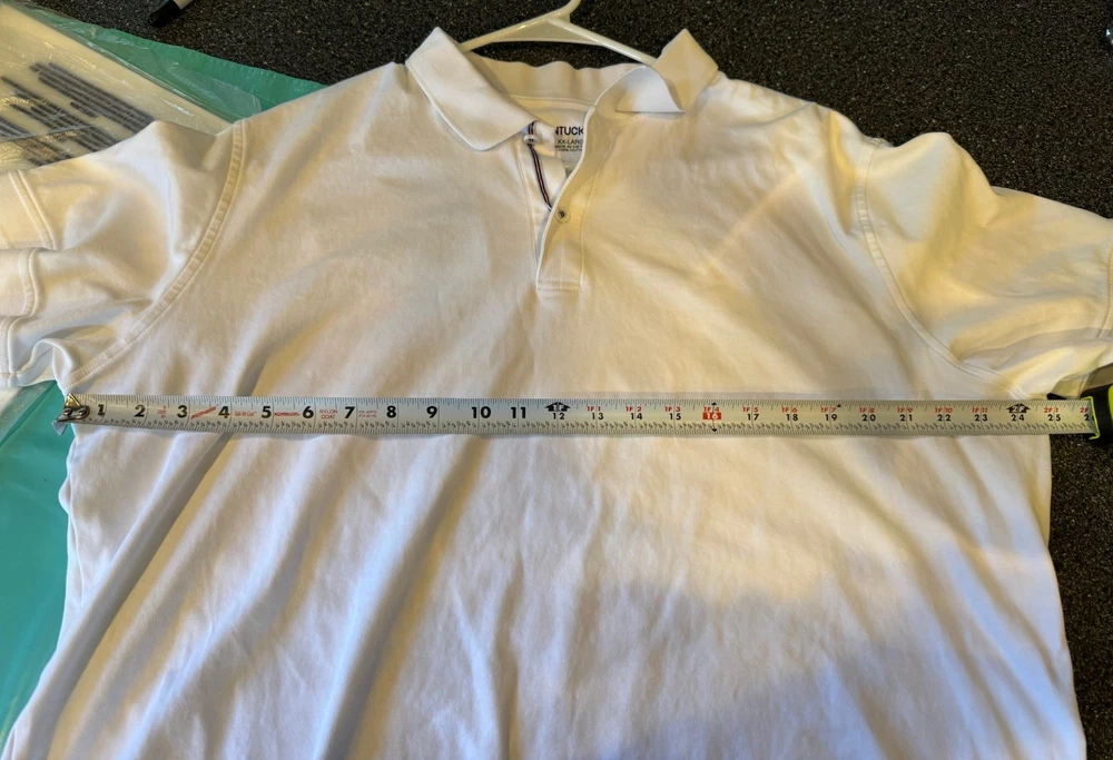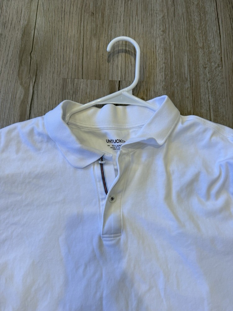 The Untuckit Damaschino Polo is a stylish and versatile men's golf shirt in white, designed for performance on the course. Made from 100% cotton knit fabric, this short sleeve polo features a collared neckline with a button closure for a classic look. With a regular fit and chest size of 25 inches, this shirt is perfect for casual occasions or travel during all seasons. The lightweight and easy-care design make it a convenient choice for the modern man who values quality and style in their wardrobe.
