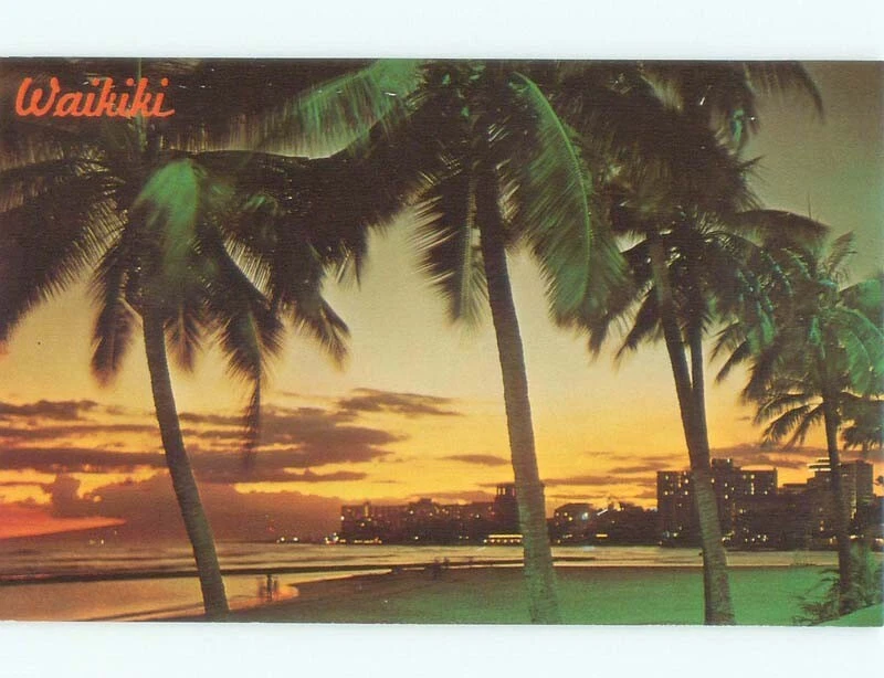 Unused Pre-1980 SUNSET ON PALM TREES AT BEACH Waikiki - Honolulu Hawaii HI d6943