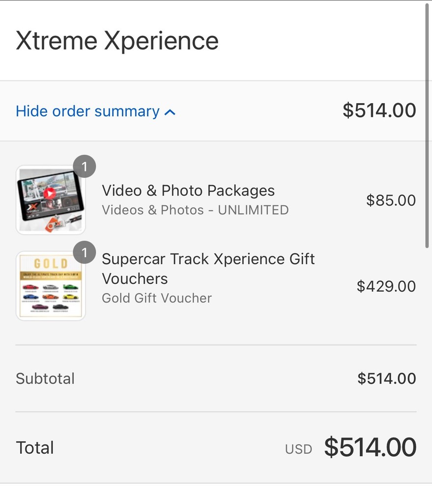 Unused Xtreme Xperience driving experience voucher Value of $500, valid until August 2027 Includes Unlimited Video & Photo Packag Gold Package Voucher - Super Car Track Experience includes car fleet options for Lamborghini, Ferrari, Porsche etc. This voucher allows the holder to participate in a thrilling driving experience at a later date, various locations, offering a unique and exciting adventure for those interested in motorsports or trying something new. Perfect for someone looking to add a memorable experience to their collection, or regift this season.