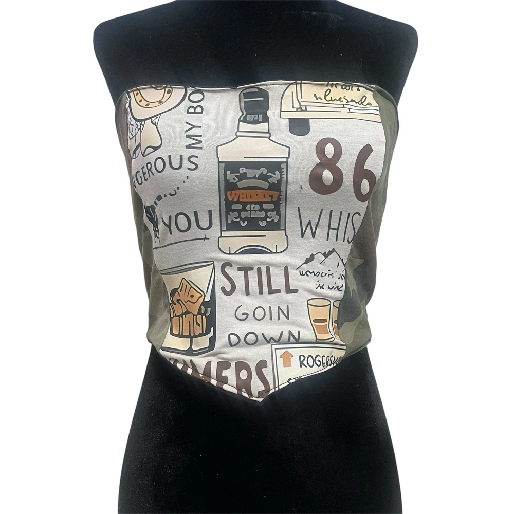 Upcycled Custom Made Morgan Wallen Camo Corset Top | Rework Shirt | Size Medium