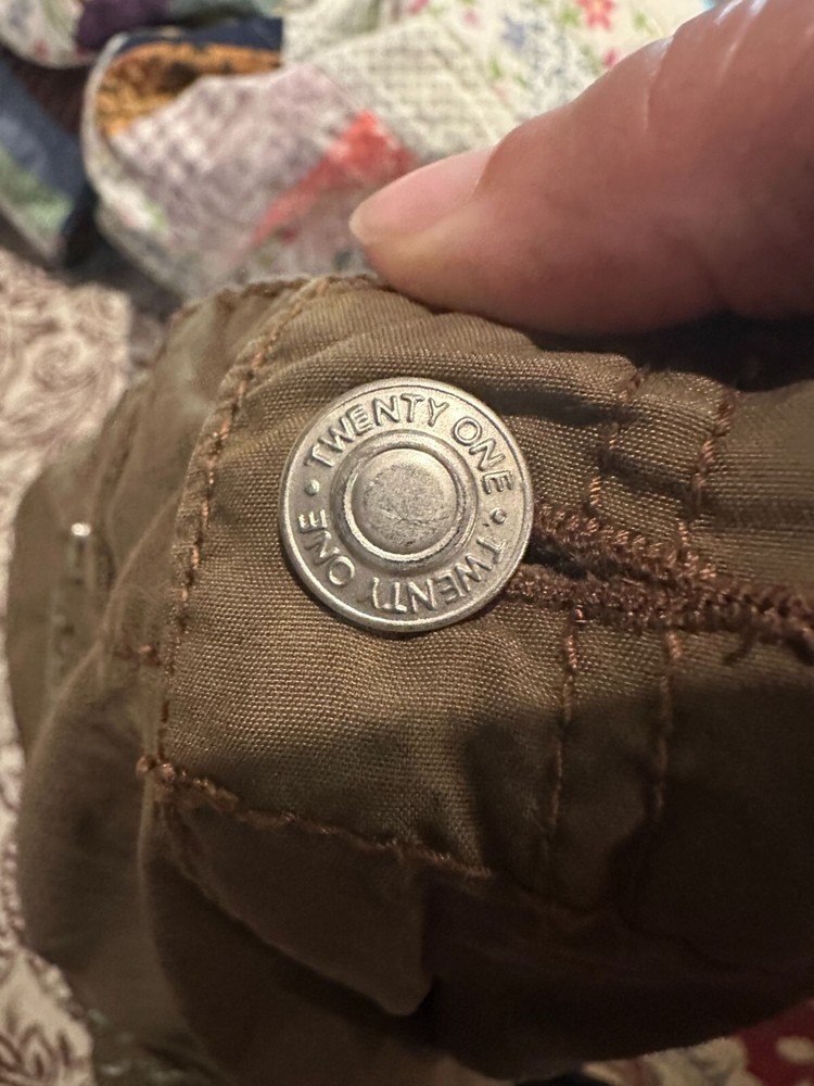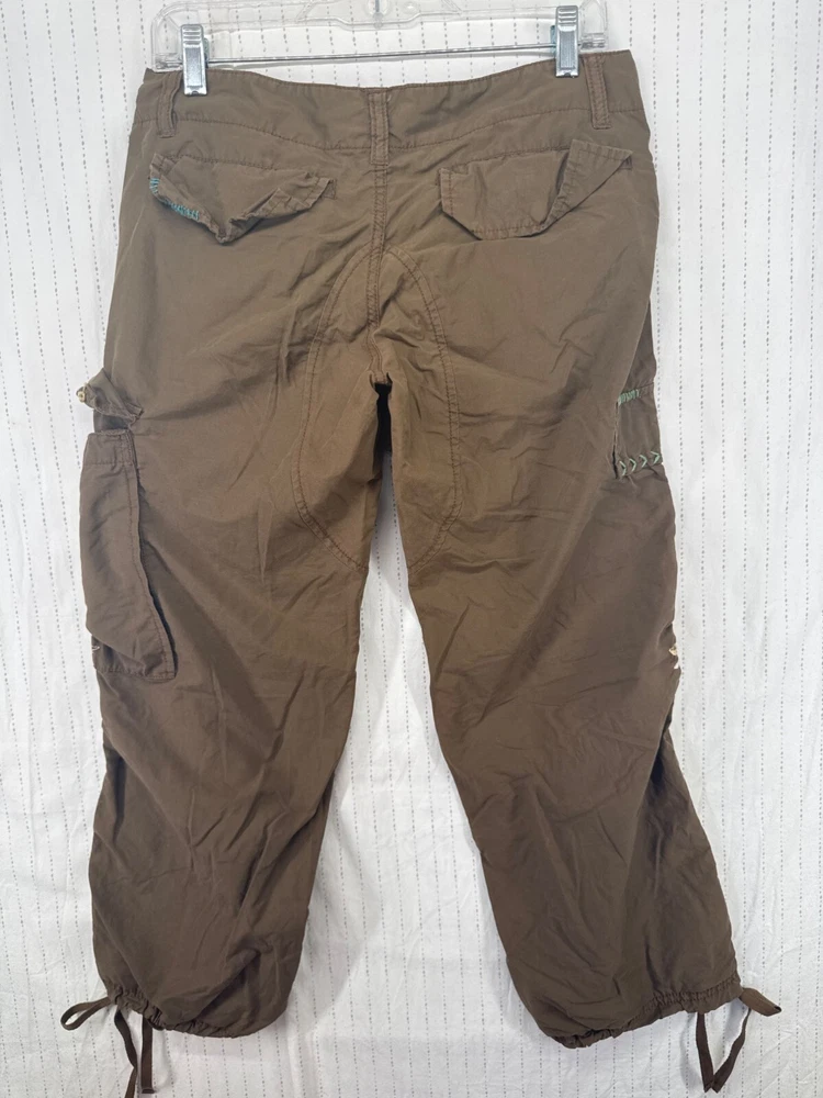 Pattern: Floral Features: Comfort, Crop, Easy Care, Lightweight, Pockets Theme: Bohemian, Festival, Hippie, Floral, Upcycled Brand: FOREVER 21 Department: Women Fabric Type: Canvas Material: Cotton, Nylon Front Type: Flat Front Occasion: Casual, Party/Cocktail, Travel Accents: Embroidered Season: Fall, Spring, Summer Rise: Mid (8.5-10.5 in) Size Type: Juniors Style: Cargo Type: Pants Personalize: No Vintage: Yes Size: M Fit: Classic Color: Brown Leg Style: Tapered Garment Care: Machine Washable Closure: Snap, Zip Handmade: No
