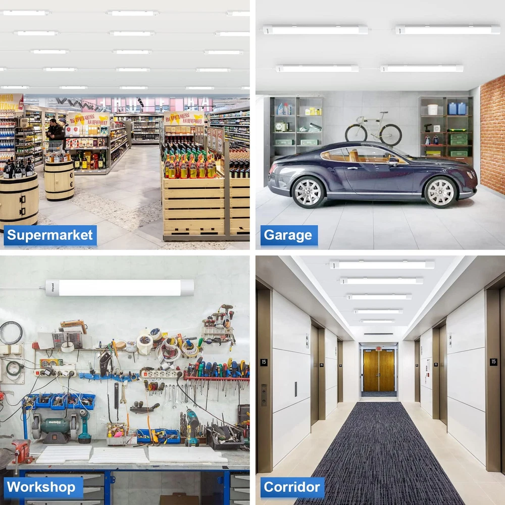 [SUPER BRIGHT & ENERGY SAVING] - The plug-in under cabinet lighting adopts high-efficiency LEDs and provides a bright 2100LM output for using only 18 watts. Save up to 85% on your electricity bill by replacing fluorescent lights with plug-ins under cabinet lights. 5000K daylight, 180° beam angle, our LED undercabinet lighting for kitchen can provide you with comfortable and bright illumination. [Waterproof & WIDE APPLICATION] - Upgrade IP66 waterproof design , makes the 2ft LED light for closet can work well even in humid environment, it's an ideal LED plug in light fixtures for indoor or outdoor, such as wardrobe, under cabinets, basements, living room, closets, workshops, work benches, kitchens, laundry rooms, utility rooms etc. [EASY INSTALLATION & SAVE MONEY] - Only simple 3 steps to complete the workbench light with plug in cord installation! The 2ft plug in light fixtures can be plug-and-play or hardwired to the wall switch. Package comes with all mounting accessories and a user manual for quick and easy installation, very economical and efficient! You can install the plug in overhead light on the wall or ceiling according to your needs. Really a one-step LED utility light solution for you! [LINKABLE & NO FLICKER] - This under cabinet LED lighting could connect up to 18 LED tube lights in series with provided seamless connectors or 12 inches connector cords, Saves your wiring and installation costs. The plug in light strip uses high-quality LED chips and dust-proof frosted cover, no flicker, no buzzing. No RF interference, will not affect other home appliances. [LONG LIFESPAN & 3-YEAR WARRANTY] - we also provide 90-day money-back guarantee and 3-year warranty to our customers, promise this LED workbench light with an average lifespan of up to 30,000 hours, please feel free to contact us if there is any quality problem with the plug in lights for ceiling.