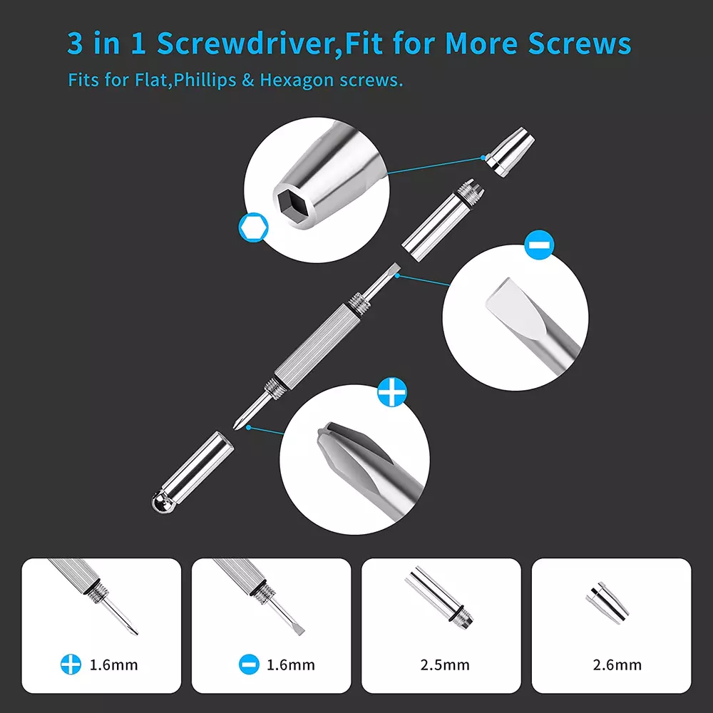 Store New Arrivals Add to Favorite View Feedback Contact Upgrade Version Magnetic Eye Glass Repairing Kit, Eyeglass Repair Tool Kit with Compact Screw Box Include Nose Pads, Precision Screwdriver Set, Screws, Tweezer for Eyeglass, Sunglass, Spectacles Watch Description Item model number jiaju46gehu363 Package Dimensions 7.87 x 5.75 x 0.67 inches; 6.38 ounces Manufacturer HQVOIC π Complete & Exquisite Eyeglass Repair Kit: Our eye glass repairing kit includes 4pcs Phillips and 4pcs Flathead magnetic screwdrivers, 16 sizes of tiny eyeglass screws, 14 pairs of eyeglass nose pads(7 different sizes), 1 curved tweezer, 1 micro screwdriver, washers, nuts, screw caps, cleaning cloth and screw box for glasses repair. With this glasses repair kit, you can repair your glasses everywhere whether you want to change nose pad or your glasses screws are aging or missing. π§‘ Useful & Comfortable Precision Magnetic Screwdriver Set: We have PH0000/1.2, PH000/1.5, PH00/2.0, PH0/3.0 Phillips screwdriver set and 1.2mm, 1.5mm, 2.0mm, 3.0mm Flathead screwdriver set in our glasses repair kit that are great for tiny screws. π Multi-functional Keychain Screwdriver: The 3 in 1 keychain screwdriver includes Phillips and Flathead screwdriver and nut holder, which is designed for eyeglasses repair, but you can also attach it to your key chain for standy applications. π Various Nose Pads & Screws : Our eyeglass repair kit is also equipped with 11/13/15/17mm different nose pads. You can choose according to your needs. Besides, 16 sizes of tiny screws can also meet your requirement. You can use the curved tweezer included in this kit to grip these tiny screws. And they are all included in our screw box, which is quite convenient to collect and carry. π Widely Applications: The Phillip and Flathead screwdriver covers a wide range of works and repairs in our daily life. This repair tool kit can used for eyeglass, sunglasses, watches, clocks and those small electronics with tiny screws. Product Description Flexible with Swivel Cap It is equipped with flexible swivel cap, which is convenient to hold in hand and freely turn with swivel cap, good for long time use. Complete Screwdriver Set Our eye glass repairing kit includes 4pcs Phillips and 4pcs Flathead screwdriver, which are PH0000/1.2, PH000/1.5, PH00/2.0, PH0/3.0 Phillips screwdriver set and 1.2mm, 1.5mm, 2.0mm, 3.0mm Flathead screwdriver set. Non-slip Handles The handle of the screwdriver set is made of plastic, which is non-slip when using. You don't need to worry about falling it down easily. ABOUT US We offer the best prices around on high quality products. Our E-store includes media such as books, movies, music and games while offering electronics, toys, sporting apparel, clothing, tools, general home, garden items and more. SHIPPING We are always working hard to ensure your package arrives as soon as possible. Please understand that some factors like weather, high postal traffic, and the performance of shipping companies are outside of our control. We offer free shipping to the lower 48 states and ship within 2 business days of payment, usually sooner. We do not accept P.O. Boxes. Please provide a physical address. RETURNS We offer a 30-Day Return Policy on items which you are not completely satisfied with. You have the option for a full-refund or an exchange of the item. No returns are available on items shipped outside of the USA. PAYMENT We accept PayPal. CONTACT US This page content is yet to come Please ad us to your favorite seller and visit again later Thank You CUSTOMER SATISFACTION We try our very best to make sure every customer is completely satisfied. If there's a problem, message us! We're happy to help.