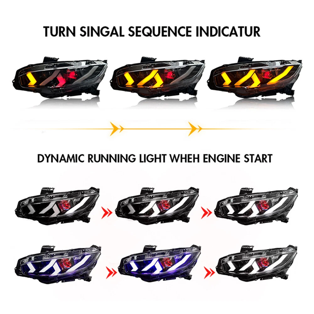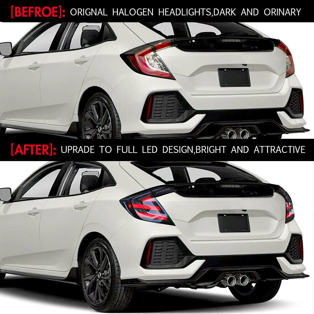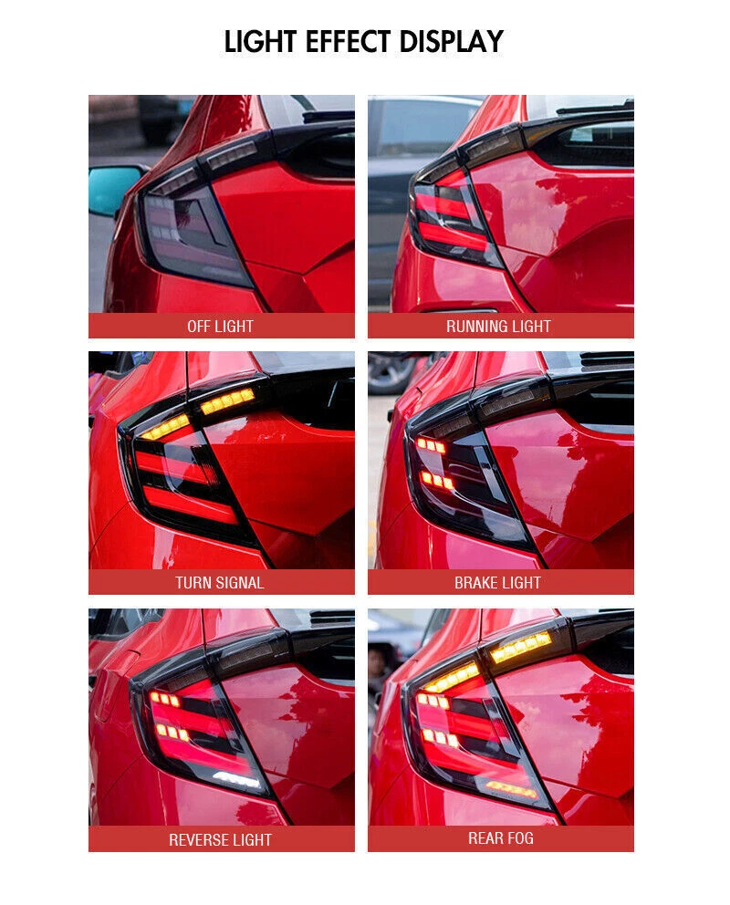 YOU MAY LIKE(FOR HONDA CIVIC) Pair LED Headlights For Honda Civic 2016-2021 Red Demon Eye Front Lamp Assembly BUY NOW LED Headlight for Honda Civic 11th Gen 2022-2024 Animation Sequential Front Lamp BUY NOW For 2022 2023 2024 Honda Civic Sedan LED Head Lamp RGB Tailights Lamp Assembly BUY NOW RGB LED Projector Headlights For 2016 2017 2018 2019 2020 2021 Honda Civic LH&RH BUY NOW Clear Lens LED Headlights For 2006-2011 Honda Civic 4Dr Sedan Animation Signal BUY NOW Pair RGB LED Projector Headlight DRL Assembly For 2016-2021 Honda Civic 10TH Gen BUY NOW LED Taillights For Honda 2006-2011 Civic Sedan Inner Outer Side Brake Rear Lamps BUY NOW LED Tail Lights for Honda Civic 11th Gen 2022 2023 2024 RGB Sequential Rear Lamp BUY NOW For Honda Civic Sedan 2016-2021 Pair RGB LED Tail Lights Dynamic Rear Rear Lamps BUY NOW 4-Lens LED Headlights DRL for 2006-2011 Honda Civic 4-Door Front Lamp Assembly BUY NOW Pair LED Tail Lights For Honda Civic Hatchback 2016-2021 Rear Lamps Sequential BUY NOW RGB LED Projector Headlights DRL For Honda Civic 2016-2021 Head Lamps Assembly BUY NOW Fitment: For Honda Civic Hatchback 2016-2021 Package Includes: 1 Pair (Left Side + Right Side) Taillights Assembly Set 1 Pair (Driver Side + Passenger Side) Headlights Assembly Set (Including Some Installation Accessories) Specification : Brand :TT-ABC Product Condition: 100% Brand New Type: LED Headlights And Taillights Assembly A few second of Start up Animation Sequential Turn Signal Full LED, No need to purchase additional light bulbs Functions: Running light +Brake light +Turn Signal+Reverse light DRL +High Beam+Low Beam lights+Turn Signal Operating Voltage: 12V-14V Material:High Quality ABS Plastic+PC+PMMA Waterproof Rate:IP67 Warranty:1 year Features:DOT-Certifed, Durable, Easy lnstalation, High Quality, OE-Certified, SAE-Cerified, Sealed Assembly, Waterproof, ISO-Certifed, Dustproof And Shurdy Note: 1.Using your factory supplied connector/harness will avoid cutting or modifying any wires.It is plug and play, easy to install still professional installation is recommended. Benefits of LED making you safer on the road for other road users to see. 2.If you have any problem, please contact me . About us Payment Shipping Returns Contact us Feedback TT-ABC is a company specializing in the production and sales of automotive parts. We offer a variety of products, including headlight, high beam lights, low beam lights, fog lights, contour lights, turn signals, brake lights, reverse lights, and interior lighting. We have our own production factory and collaborate with hundreds of component factories, committed to providing customers with high-quality products, the most favorable prices, and a professional after-sales customer service team. Our goal is to meet the needs of our customers and provide them with an excellent shopping experience. 1.Please confirm if the address and postal code are correct before placing an order! Convenient and fast shipping. 2.We can accept payment method is PayPal, Google Pay, Visa, Master Card, Amex and Discover and other payment way. 1.Shipping from the US Stock by USPS,FedEx or UPS . 2.Within 1-3 business days after payment cleared. 3.Please offer us your telephone number and correct zip code,or your order will be delayed since the courier will need it for the delivery. 4.Delivery time depends on destination,usually arrive 1-6 days after delivery. There are some tips for you: 1. If There are any problems with the product, please contact with us before leaving neutral and negative reviews feedback ,give me a Chance to make it right 2. If you are in our exclusion countries. Please write to us for shipping .If When the goods arrive, please check them carefully 3. If you find that the goods have been damaged, please be sure to refuse to collect the goods and ask the courier to return the goods to us. If the goods are damaged, please do not collect. 4. If the item you have ordered is defective, contact us within the warranty period, we will replace the defective item for you with an item of equal functionality at first. 5. If buyer do not want neither replacement nor partial refund, but want returning,buyer should be responsible for all the returning ship charges. 6. To be eligible for a return, the item(s) must be in new, unused condition with all original tags and packaging intact. Please note that we cannot accept returns for items that have been used, damaged, or altered in any way. Our working hours are from 9:00am to 18:30 China time (Monday to Friday). Communication is the best way to solve problems. If you have any questions, please contact us or leave us a free message. We will reply immediately at our convenience. After-sale If it happens that the lights get moisture after you install them on your car, it would be normal for first time using. You just need to keep using for a period of days, the moisture will disappear. because there is inner air cycling in the lights as we design. As for headlights, you can also open the cover of low/high beam so that the moisture will out more quickly. If the moisture still exist, please feel free to send us message for help, we will try our best to help you. After you install, if you find that there have function does not work, please check if the harness is connected correctly, and exchange the left and right , If it still does not work, please rember take some photos or videos, please feel free to contact us. We will appreciate if you can takes some pictures or videos about your problem, and also send us the barcode of the products(every product we sell has a barcode on the backside of the light and outside of the package, it's very important for us to find the problem) If you open a request or case optionaly before communication, it would be hard for us to serve you. Feedback Policy: At our store, we pride ourselves on providing an exceptional shopping experience for our customers. We offer high-quality products and outstanding customer service, an