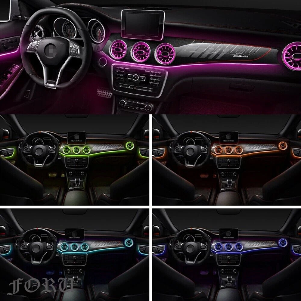 Add a touch of style and comfort to your Mercedes Benz W117 CLA180 CLA200 CLA250 CLA45AMG with this LED Air Vent Ambient Light Interior. It features easy installation, easy cleaning, and a painted finish for a sleek look. This Dashboard AC Vent is a great addition to your car's interior. With its performance parts, you can enjoy a comfortable ride without worrying about the condition of your vehicle. Get your hands on this high-quality product now and experience a new level of driving pleasure. Detail information: Condition : New Material : Plastic 12 colors Ambient Light Kit Fitme nt: for Mercedes Benz w117 cla180 cla200 cla250 cla45AMG 2013 2014 2015 2016 2017 2018 2019 Package Included ( 10pcs/set ) : 5pcs Front Dashboard Air Vent Lights 4pcs Door Light 1pc Dashboard Light Strips NOTE: NOT Including Installation Guide or Manual. Professional installation is highly recommended .