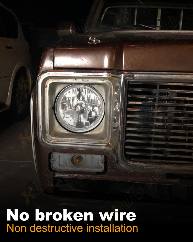 7" Inch Round Diamond Crystal Clear Glass Lens / Headlight Conversion Kit contains everything you need to upgrade your headlights to the newest LED headlight technology while keeping that classic look! -Note: Without mounting bracket, some models may need mounting bracket! -Made with High Quality Glass Lenses - NOT cheap plastic! -Housing has Removable bulb sockets for you to install the new LED bulbs! -Direct Plug & Play design (certain vehicles will require slight modification) -Professional Installation is highly recommended -Warranty 5 years Pair (2 Bulbs Right And Left) 7" Inch Diamond Crystal Clear Semi Sealed Beam Glass Lens Housing Headlights. This Pair Of Headlights Includes 70W Super White LED H4 Light Bulbs. These Headlights Have A Clean Custom Look But Fit Into The Stock Buckets And Plug Into The Stock Wiring Without Modification. These Light Up 500 Percent Brighter And Whiter Than The Standard Stock Sealed Beam Incandescent Headlight Bulbs. These Have The Original 3 Prong Plug Design On The Back So They Will Plug Directly Into The Original Wiring Harness. These Will Fit Any Car Or Truck That Has 2 Round Glass Headlights That Are 7" Inches. H4 LED Bulbs Specifications -Color: 6000K Cool White -Power Consumption: 100W/set -Brightness: 25000lm/set -360 Degree / YZK5 Series CSP Chip Perfect Beam Angle -H4 - Dual Beam Function (You will have HIGH AND LOW!) -500% Brighter than Stock Halogen -Lifespan: 50,000 Hours -Waterproof IP68 -Warranty 5 years Suitable for motorcycles, car,auto, vehicle,motos, ATVs, UTVs,cars, trucks,Scooter Lighting Easy to install,plug&play Contents: - 2x Headlight Housings - 2x H4 LED Bulbs (Hi/Lo Dual Beam) On Dec 23, 2024 at 18:53:35 PST, seller added the following information: