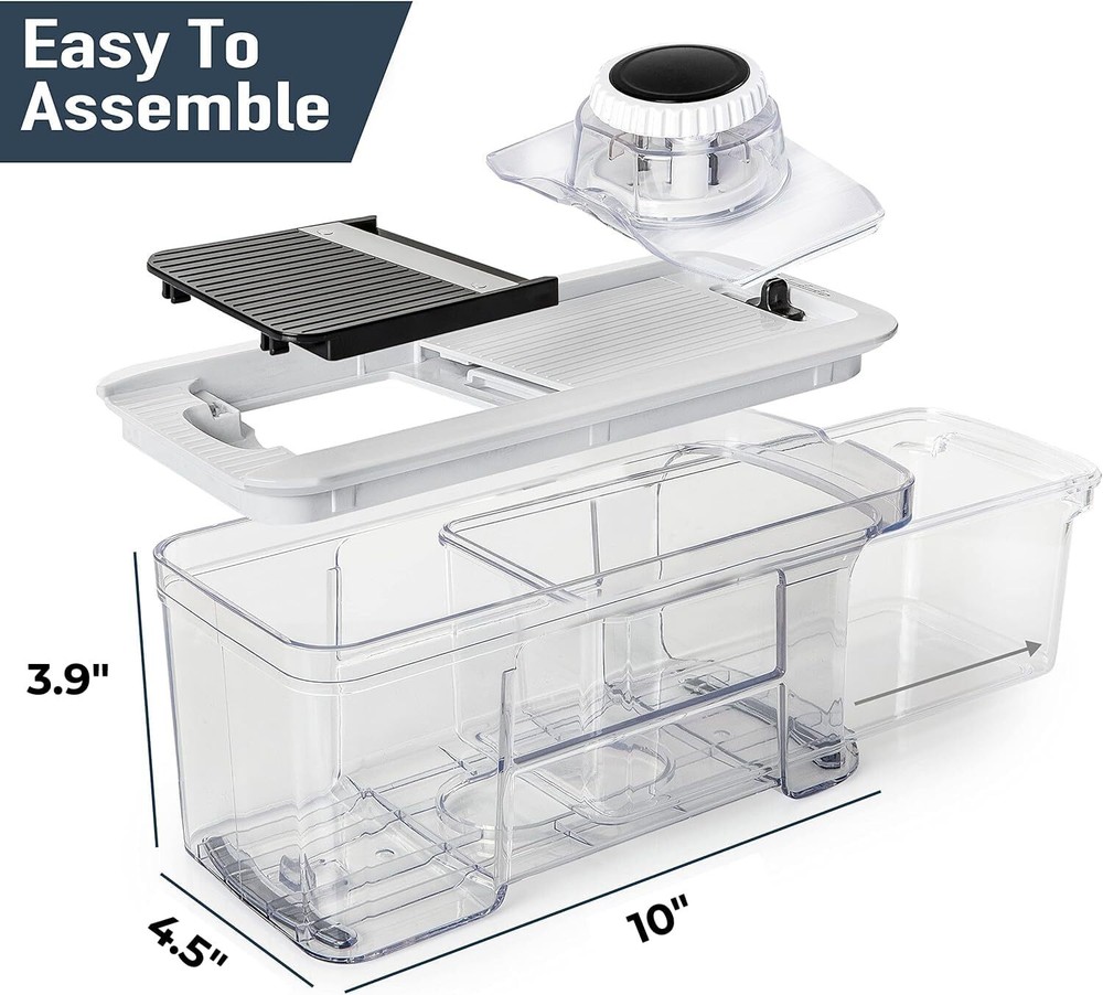 Fullstar All-in-1 Vegetable Chopper, Mandoline Slicer & 6 in 1, Black/White Product Details Brand: fullstar Product Dimensions: 7.2"L x 5.5"W x 14.6"H Material: Stainless Steel Color: Black/White Special Feature: Multipurpose Recommended Uses For Product: Cheese, Vegetable Product Care Instructions: Dishwasher Safe Blade Material: Stainless Steel Item Weight: 3.7 Pounds Blade Length: 5 Inches Blade Shape: V Shape Operation Mode: Manual Manufacturer: Fullstar Item Weight: 3.7 pounds Country of Origin: China Item model number: Mandoline Slicer and Chopper Is Discontinued By Manufacturer: No Greatest functionality on the market - 5 interchangeable blades means this cook's tool & gadget set meets all of your slicing, grating and chopping needs. Choose the perfect thickness of your sliced vegetables with the easy-to-use adjuster dial and select the ideal size for your chopped vegetables by simply changing the inserts. Bonus handheld spiralizer - compact and easy to use, the Fullstar mandoline slicer comes with a bonus 3 in 1 adjustable spiralizer. Unlike large units this kitchen gadget is easy to store and a breeze to clean as it is dishwasher-safe. No mess and no slips - our catch tray makes cooking so much more convenient, no mess and no messing around! It makes cleaning effortless and our non-slip base also makes your slicing, chopping and grating that much easier. Plus the slicer chopper is entirely dishwasher-safe (top rack) . A Kitchen Essential - Whether you're a novice cook or a seasoned pro, the Fullstar Food Chopper is a must-have in any kitchen. It's versatile, easy to use, and backed by our satisfaction promise.