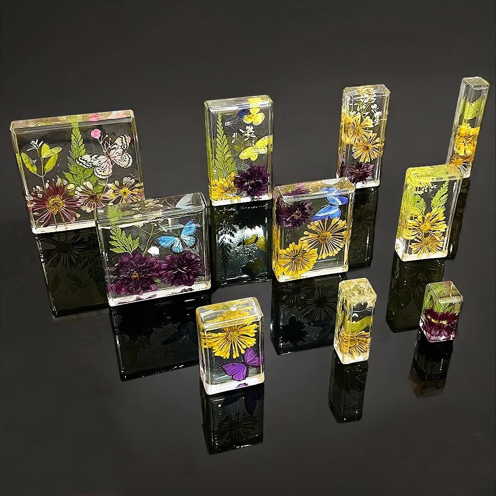 【Upgraded No Polishing Silicone Mold】: This set of rectangle square molds, designed with rounded corners, is easy to use and requires no polishing. 【10 Different Sizes Cube Resin Mold Set】: This epoxy casting mold set includes 10 sizes, it can meet your various crafting needs. 【Thick Shiny Silicone Molds】: The silicone material of this mold set is thick and sturdy. The finished piece has glossy surface with mirror effect. 【Suitable for Various Casting Material】: These silicone resin molds are compatible with most casting material such as epoxy resin, UV resin, dry flowers, insects, specimen, candles, wax, concrete, soap, clay, plaster, gypsum, etc. 【Creative Project DIY 】: These silicone molds can be used to make resin ornaments, resin night light, paperweight, specimen dried leaf flower preservation, Christmas wedding home decoration.