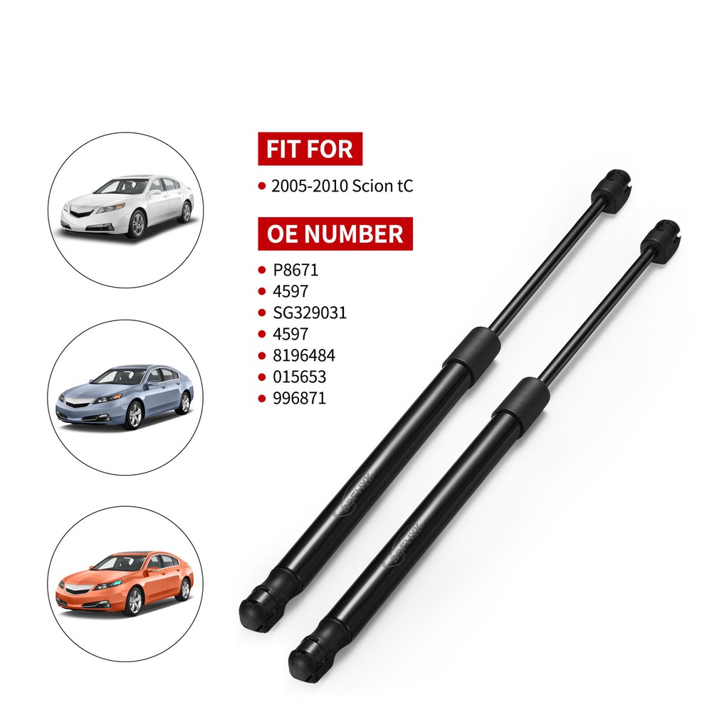 1. These lift supports are a game-changer for my Scion tC! The installation was quick and easy, and they work even better than the original ones. The added lifting pressure makes opening the hatch effortless, and it stays firmly in place. Perfect fit for my 2008 tC—no more struggling with a sagging trunk. Highly recommend for anyone needing a reliable upgrade!