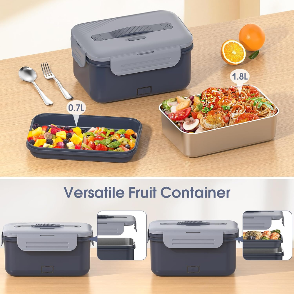 Store New Arrivals Add to Favorite View Feedback Contact Electric Lunch Box Food Heater Upgrade 3 in 1 Portable Food Warmer 100W Leakproof Heated Lunch Box for Adults Car/Truck/Office with 1.8L SS Container Fork Spoon Carry Bag, 12V/24V/110V, Grey Description Item model number HD-J-0116 Unit Count 1.0 Count Number of Compartments 3 Capacity 1.8 Liters Number of Items 8 Color Gray Special Feature Dishwasher Safe, Heat Resistant, Leak Resistant, Thermal Insulated Material Plastic, Stainless Steel Theme Home Item Weight 2.7 pounds Shape Rectangular Age Range (Description) Adult Recommended Uses For Product Car, Home, Office, Travel, Truck Included Components Bag, Fork and Spoon, Home/Car Cord, Lunch Box Item Form Box Package Dimensions 10.2 x 7.4 x 5.75 inches Product Care Instructions Dishwasher Safe, Hand Wash Only Enjoy Healthy Homemade Food - Heated lunch box is made of food-grade PP material and 304 stainless steel, ensuring safe contact with food. The bottom aluminum plate enables even and efficient heating. Food warmer container exhibits excellent heat resistance, is odor-free and durability. Max 100W & Fast Heating - PTC heating systems offer rapid and efficient heating performance, which has a constant temperature and low heat consumption cycle function, it only takes 20-30 minutes to heat up to the optimum temperature. This keeps food evenly heated while preserving its moisture and freshness. Leak-proof & Easy To Carry - Designed with secure latches on all four sides, our electric lunch box is sturdier and not breaking easily. The built-in rubber seal prevents food spills during transport. Includes an aluminum foil thermal bag and anti-scalding handle for easy carrying. 4-IN-1 Portable Food Warmer - Heating lunch box includes 110V/220V adapters for home/office and 12V/24V adapters for car/truck. Whether you're working outdoors or indoors, you can enjoy freshly heated meals. It also makes for an ideal warm gift for family and friends. (NOTE: NOT INTENDED UNDER 12) Removable & Easy to Clean - 2 stackable containers, 1.8L stainless steel bottom for food and an upper PPcontainer with 3 compartment for tableware and fruits. Achieve a balanced and nutritious meal with ease! Removable design for dishwasher-safe or hand wash! (Note: Don't wash the external lunch box directly with water, don't add water to the heat base.) Product Description CARSOLT PORTABLE ELECTRIC LUNCH BOX MAX 100W QUICKLY HEATED TO THE OPTIMAL TEMPER 2 CONTAINERS, BALANCED MEALS, NUTRITIOUS AND HEALTHY Outdoor Use Perfect for camping, traveling, family gathering, and other outing activities, enjoy a healthy food! Car Use Dine anytime during journey without wasting time trying to find restaurant! Truck Use Dine anytime during journey without wasting time trying to find restaurant! Office Use Save time and money, and homemade meals are nutritious and healthy! Increase your happiness in life! Work Use No need to eat fast or cold food anymore, you can eat the taste of home and enjoy hot food! SUITABLE FOR A VARIETY OF SCENARIOUS 1 OUTDOOR USE 2 CAR USE 3 TRUCK USE 4 OFFICE USE 5 WORK USE Easy to Clean It can not only be rinsed directly with water but also placed in the dishwasher, bringing more convenience to your life. Home/Car Plugs Equipped 12/24V car adapter plug, and a 110V/220V home/office adapter plug, allowing you to enjoy warm and healthy food anytime, anywhere. Insulation Bag Comes with a lunch bag lined with aluminum foil, it can maintain the temper of food, ensure that the meals remain warm and delicious when you are out. Heating quickly It adopts constant temperature PTC heating, It makes the food quickly heated to the optimal temperature while keeping it fresh. ABOUT US We offer the best prices around on high quality products. Our E-store includes media such as books, movies, music and games while offering electronics, toys, sporting apparel, clothing, tools, general home, garden items and more. SHIPPING We are always working hard to ensure your package arrives as soon as possible. Please understand that some factors like weather, high postal traffic, and the performance of shipping companies are outside of our control. We offer free shipping to the lower 48 states and ship within 2 business days of payment, usually sooner. We do not accept P.O. Boxes. Please provide a physical address. RETURNS We offer a 30-Day Return Policy on items which you are not completely satisfied with. You have the option for a full-refund or an exchange of the item. No returns are available on items shipped outside of the USA. PAYMENT We accept PayPal. CONTACT US This page content is yet to come Please ad us to your favorite seller and visit again later Thank You CUSTOMER SATISFACTION We try our very best to make sure every customer is completely satisfied. If there's a problem, message us! We're happy to help.