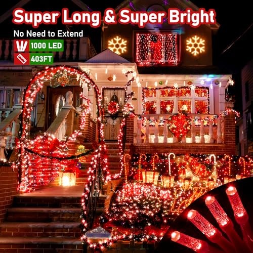 Upgraded 403FT 1000 LED Christmas Lights with Clear Wire in Green