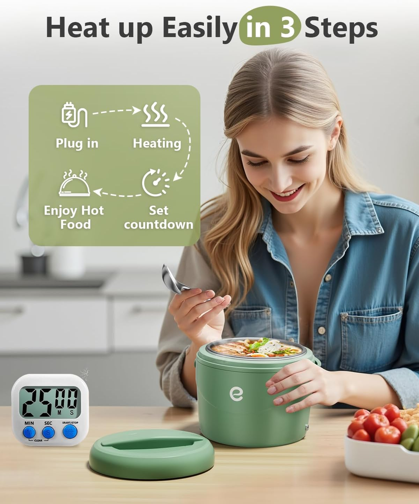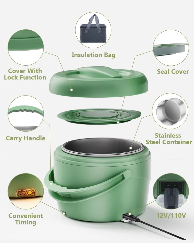 Store New Arrivals Add to Favorite View Feedback Contact Electric Lunch Box with Timer, Large 40Oz Faster Food Heater for Adults, Upgraded 80W Portable Heated Warmer for Car/Truck/Office/Travel, Spill-Free, SS Fork Spoon and Insulated Carry Bag Description Item model number DFH-C30 Unit Count 1.0 Count Capacity 1.2 Liters Number of Items 1 Included Components Compartmentalized Container, Single Container Color Green Special Feature Super Fast Heated, Airtight, Leak Resistant, 1 Pack 1.2L Container Material Stainless Steel Theme Car, kitchen and dinning, Car, Love, Truck, office, family, Vegetable, office Item Weight 2.44 pounds Shape Round Cartoon Character function(f) {var _np=(window.P._namespace("DetailPageProductOverviewTemplatesJava"));if(_np.guardFatal){_np.guardFatal(f)(_np);}else{f(_np);}}(function(P) { P.when('A').execute(function(A){ A.on('a:truncate:po-attribute-truncate-9:updated', function(data) { var isTruncated = !data.truncateInstance.getIfTextFits(); var seeMoreElement = document.getElementById('po-attribute-see-more-id-9'); if(seeMoreElement) { seeMoreElement.style.display = isTruncated ? '' : 'none'; } }) }); })); portable soup warmer for lunch for vehicles, truck drivers, work crews, travelers, delivery persons, busy moms and dad See more Age Range (Description) Adult Recommended Uses For Product office, travel, home, car, truck warming food like soups, leftovers, and more Item Form Round Bowl/Box Product Dimensions 7.87"D x 7.87"W x 6.3"H Product Care Instructions Dishwasher Safe for Removable Container, Dishwasher Safe for Removable Tight-Seal Lid Size 1.2L 【Fast Heating Technology & Enjoy Food】Adopted the advanced PTC constant-temperature heating technology to warm meals, the Esemoil electric lunch box food heater can heat your food faster than others. It can keep food at the right temperature within 20-30 minutes while maintaining the moisture and freshness of the food. You can enjoy warm homemade meals anytime, anywhere. 【40oz Large Capacity & Meet Meals】Esemoil Lunch box crafted from food-grade PP plastic & removable 304 stainless steel container. The large 40oz capacity design can hold more soups, foods, and more to meet more lunch requirements of Adults. It is ideal for truck drivers, construction workers, and office professionals 【Scheduled Reminder & Perfect Fit】The carefully prepared timer will always remind you of the heating time of food, helping you better grasp the heating time of food and not miss the best time to eat it. Besides, it supports 12V/24V/110V power sources, and it seamlessly integrates into various life scenarios—whether you're at home, working in the office, or driving. 【Leak-proof & Dishwasher-safe】Our electric lunch box uses a tight sealing gasket to effectively prevent leaks and spills. In addition, the stainless steel liner is dishwasher-safe for more convenience. These features make cleaning easy and convenient, making it an ideal choice for a busy lifestyle. Note: Do not immerse the heating base in water. 【Perfect Humanized Design】By the foldable handle Humanized Design, our lunch box makes it easy to take in the car or place at your desk. Besides, the insulated carry bag will help you keep meals secure and warm. Enjoy hot meals wherever you are. 【Thoughtful Gifts & Warm Life】Prepare an Esemoil electric lunch box for your caring loved one, so that he can enjoy warm home-cooked meals at work, on the road, or at home. It's perfect for Gifts for Father’s Day, birthdays, Mother’s Day, Thanksgiving Day, Christmas Day, New Year's Day, and more festivals. Product Description ABOUT US We offer the best prices around on high quality products. Our E-store includes media such as books, movies, music and games while offering electronics, toys, sporting apparel, clothing, tools, general home, garden items and more. SHIPPING We are always working hard to ensure your package arrives as soon as possible. Please understand that some factors like weather, high postal traffic, and the performance of shipping companies are outside of our control. We offer free shipping to the lower 48 states and ship within 2 business days of payment, usually sooner. We do not accept P.O. Boxes. Please provide a physical address. RETURNS We offer a 30-Day Return Policy on items which you are not completely satisfied with. You have the option for a full-refund or an exchange of the item. No returns are available on items shipped outside of the USA. PAYMENT We accept PayPal. CONTACT US This page content is yet to come Please ad us to your favorite seller and visit again later Thank You CUSTOMER SATISFACTION We try our very best to make sure every customer is completely satisfied. If there's a problem, message us! We're happy to help.