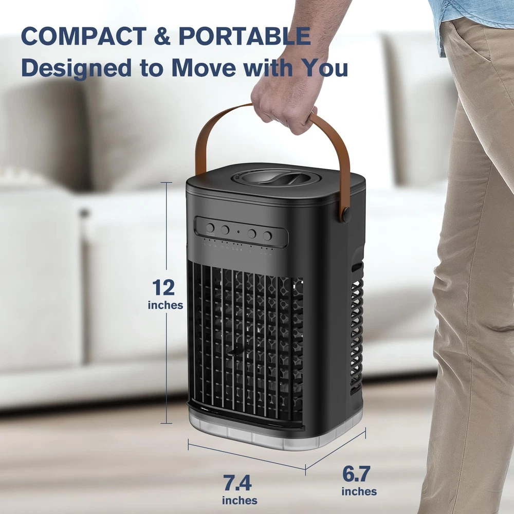 βοΈ γππππ ππ©π π«ππππ ππ ππ¨π¨π₯π’π§π ππ²π¬πππ¦γThanks to the dual-motor power and ultrasonic nebulizer of the mini air conditioner, βs advanced cooling system delivers a blast of icy air in just 3 seconds β chilling the air from 80Β°F down to 59Β°F fast. And easily adjust the airflow angle up and down within a 120Β° range to direct cool air exactly where you need it.