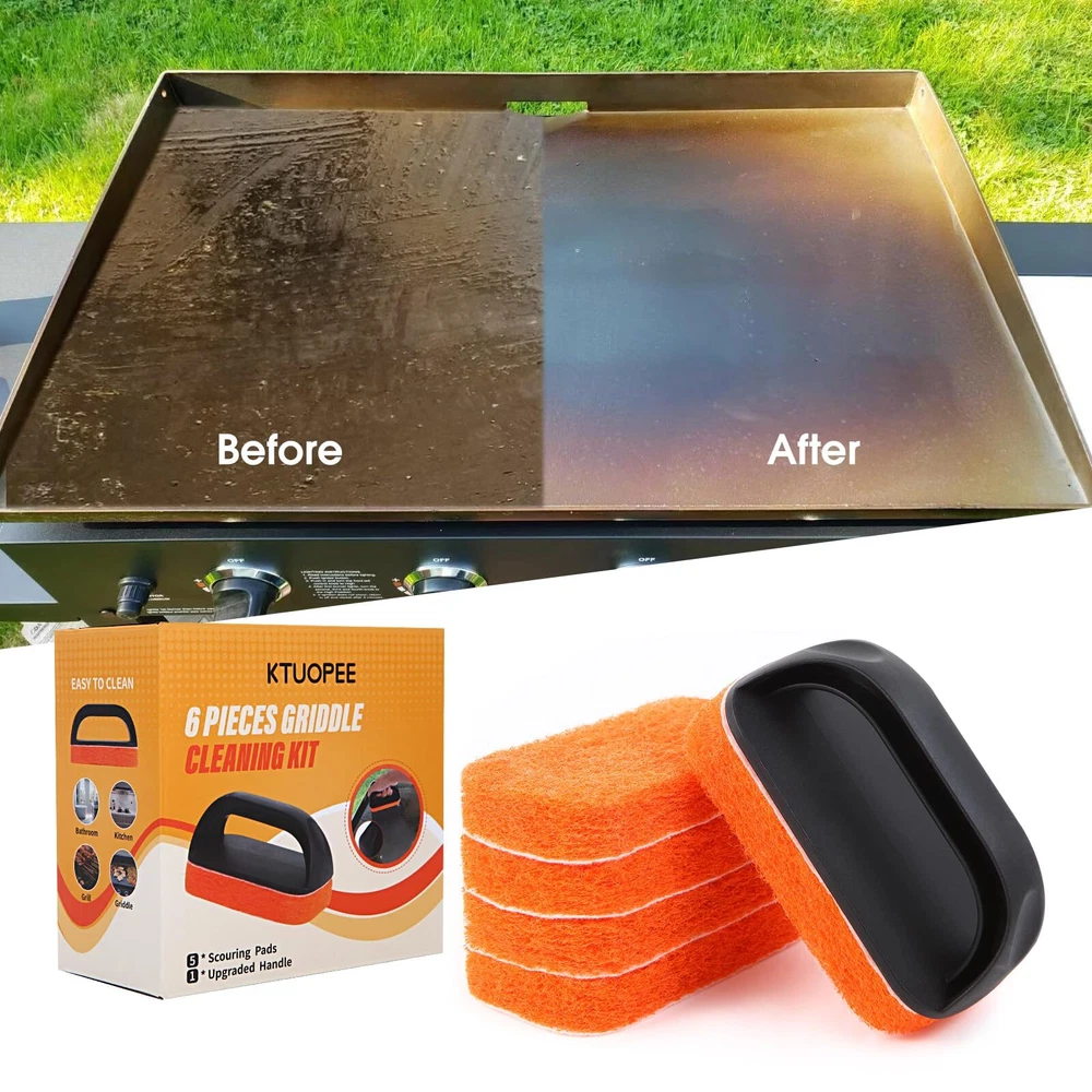 Upgraded 6-Piece Griddle Cleaning Kit for Blackstone, Flat Top Grill Cleaner Non-Scratch Scouring Pads for Kitchen - Heavy-Duty 5 Griddle Scrubber Pads with 1 Handle 【Simple and Efficient Griddle Cleaning Kit】KTUOPEE grill cleaning kit including 5pcs scouring pads and 1pc upgraded cleaning handle, making your cleaning job task a breeze. A must have cleaning kit for cooking enthusiasts. 【Upgraded Scouring Pads】Made from polyester, All griddle scrub pads are backed with a layer of white fabric, The griddle cleaning pads can effectively remove stubborn stains without scratching your griddle or grill. the grill scrubbing pads are easy to rinse clean and they will be ready fo next use again. 【Upgraded Handle】Whatever hot or cold surface, the grill scrub pads with handle holder can keep your hands away from the heat, prevent burns and other injuries. Non-slip concave design for better grapping and using, upgraded handle with magic tape, so the griddle scrubbing pads are very easy firmly stay attached to it, no issues with the griddle scrubbing pads coming off during use. 【Strong Cleaning and NOT Damage Surface】Despite the griddle cleaner with strong cleaning power, grill scrubber pads are designed to be gentle and not easily scratch or damage most surfaces, such as griddle, grill, cooktop, range hood, kitchen sink, pans, pots, and stainless steel utensils. 【Wide Range of Uses】This grill cleaning brush is not just suitable for blackstone griddle, also suitable for kitchen, grill, bathroom, or almost any surface. 【BBQ】6 pieces grill brush come in a beautiful package which can be used for those who make delicious food for you. SHIPPING Domestic Buyers - We have confidence in our products, but if you are not fully satisfied please contact us within 30 days of purchase and you will get full refund. - We ship within 3 business days of payment, usually sooner - We offer FREE shipping on all orders! - We only ship to the lower 48 states, no APO/FPO addresses or PO Boxes allowed International buyers – please note: Import duties, taxes, and charges aren't included in the item price or postage cost. These charges are the buyer's responsibility. - Please check with your country's customs office to determine what these additional costs will be prior to bidding or buying. * Order Cancellation Policy ** You can return a product for up to 30 days from the date you purchased it. 1. The seller reserves the right to cancel the special case only due to eBay cancellation fee. 2. The decision of seller is the final. 3. The seller will respond to the cancellation request within 2 business days. Please wait for the result of cancellation. 4. In case the cancellation is not completed by some reasons, the buyer can follow the options below to get the refund. 4.1 The buyer can reject the item when it arrives. 4.2 The buyer can send the item back to the seller within 30 days If the buyer receives item (USA Shipment ONLY). The seller will provide the FREE return label to the buyer when the buyer opens " Return Item" case on eBay by using the reason as "Change my mind" ONLY. 5. When buyer has placed the order. The order will be processed and completed by automatic warehouse system within 5 minutes. In case that buyer sends the cancellation request after 5 minutes of placing the order, the request will be rejected. **Sending direct message to cancel the order is not allowed for every case.* Return Policy For the return case - If buyer would like to return the items for refund or replacement, please CONTACT SELLER to receive the free return label from seller. The refund or replacement will be processed with the tracking number of return label which is provided by seller only. The other ways of return which are not approved by seller will not be processed for the refund or replacement.