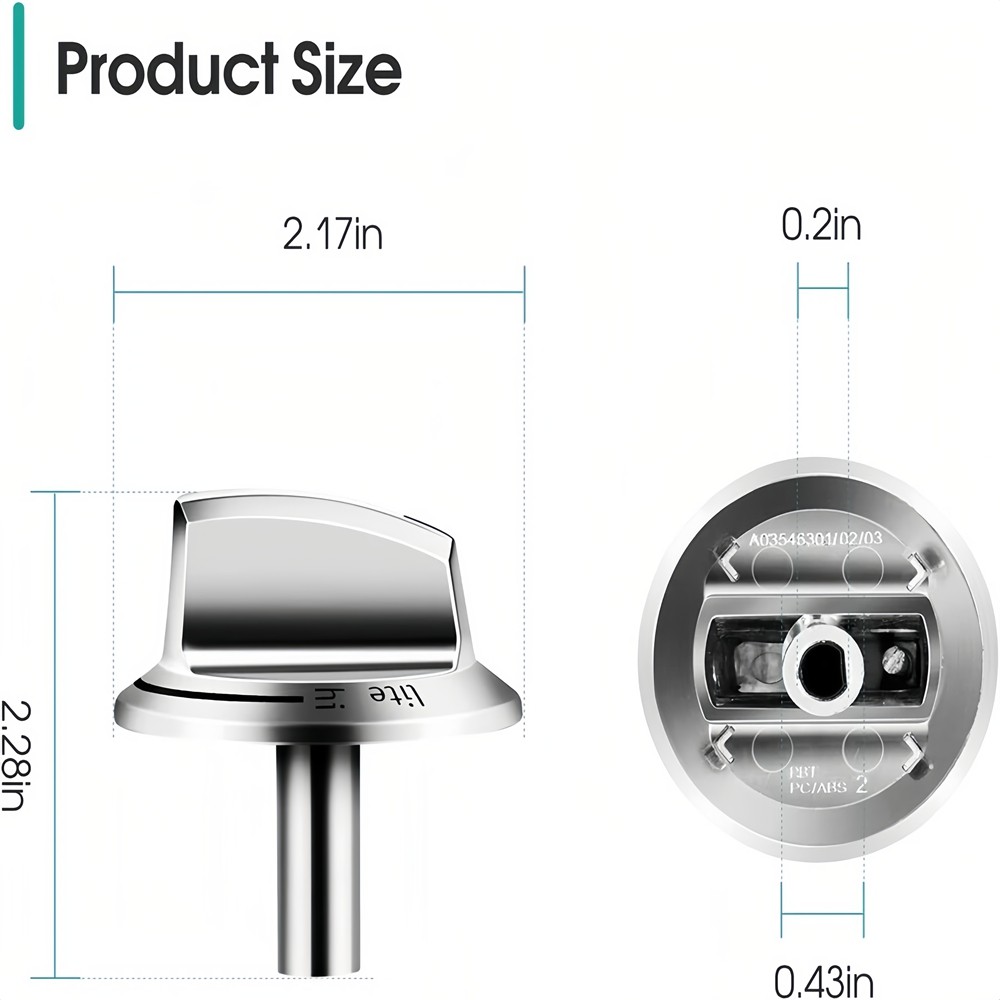 5304525746 Gas Stove Knob Replacement Material:Plastic, ABS Attention: Check first that the dimensions correspond to each other to ensure that our control knobs fit your machine Replaceable Part N O : A03546301/02/03, 5304525746, 5304504839, PD00064795, 4960519, AP6997304, PS16227241, EAP16227241 and is compatible with FFGC3026SS FFGC3626SS FFGC3626SWC FGC3047QS and many more Model Number FFGC3026SBC COOKTOP FFGC3026SBD COOKTOP FFGC3026SSA GAS COOKTOP FFGC3026SSB COOKTOP, GAS FFGC3026SSC COOKTOP FFGC3026SSD COOKTOP FFGC3026SWC COOKTOP FFGC3026SWD COOKTOP FFGC3626SBC COOKTOP FFGC3626SBD COOKTOP FFGC3626SSA GAS COOKTOP FFGC3626SSB COOKTOP, GAS FFGC3626SSC COOKTOP FFGC3626SSD COOKTOP FFGC3626SWC COOKTOP FFGC3626SWD COOKTOP 【Note】 5304525746 knobs burner control knobs, the installation hole diameter (D shaft size) is 0.24 inch/ 6.21 mm in length, 0.21 in/5.38 mm in width, (please refer to size picture) and measure your knobs control insert size to make sure this knob fits before purchasing.This item includes 5 x 5304525746 knobs replacement, which can replace all your old knobs on stove. 【Upgraded Durable Version】 5304525746 stove knobs replacement part are the improved design based on market research. Stove knobs cover is made of high-resistance ABS plastic with the advantage of corrosion resistance, high temperature resistance and strong reinforcement. So that it can be installed more secure, durable sturdy and prolong the lifetime. 【Fits Appliance Models & Replacement Part Number】 5304525746 range control knobs are perfectly compatible with most of Frigidaire series range stove models:FFGC3626SS ,FGC3026SSA,FFGC3026SSB,FFGC3026SSC,FFGC3026SSD,FFGC3026SSE,FFGC3626SSA,FFGC3626SSB,FFGC3626SSC,FFGC3626SSD,FFGC3626SSE, FFGC3626SSF, FFGC3626SSG etc. It replaces for part number 5304504839. (Please contact us if you are not clear the models, and we are here to help you within 24 hours) 【Easy Installed】 No tools required - Easy to install the knobs YOURSELF and quickly get your range stove back to work within few minutes. For any reason you’re not 100% satisfied, please contact us. Our professional service team is on line 24 hours for you. 【After sales guarantee】 For whatever reason, if you are not satisfied, kindly contact us, we would provide you with a quick and satisfactory answer, Customer satisfaction is our top priority.