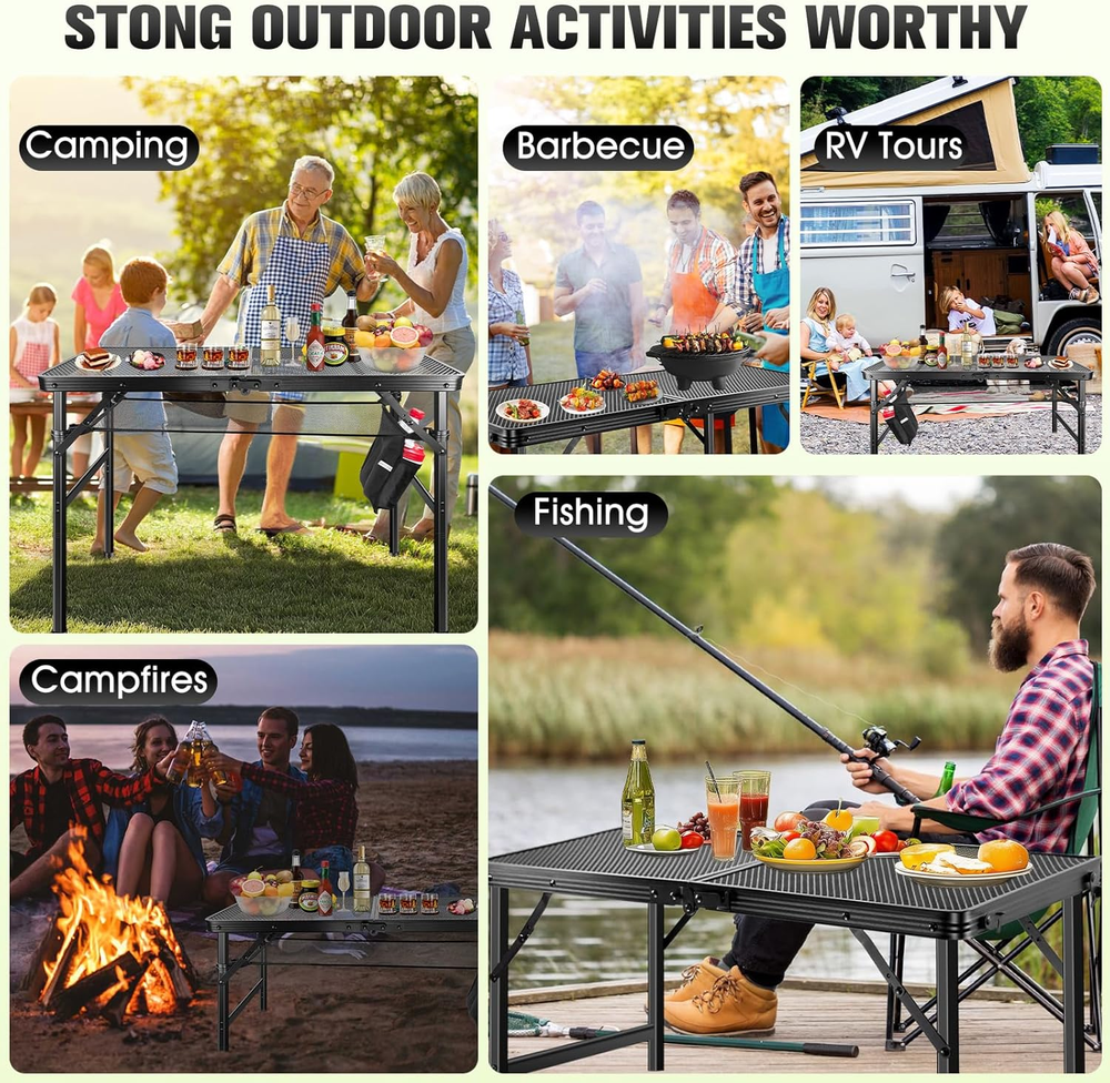 Upgraded Folding Grill Table Metal Portable Camping Table Height Adjustable BBQ lightweight & portability:What a great and convenient grill table for all your outdoor grilling prepping stable and spacious! small and compact when fold easy to take along in any mode of travel. it is light enough to pick up even when you have something on your hand. you will get value for your money. the folding grill table even has rubber feet and its a carrying handle design makes it super portable. Tucks into a corner when not in use.The outdoor portable grill table is an absolute gem for any outdoor adventure! upgraded mesh bag and side pocket:The small grill table is equipped with a detachable mesh bag and 2 side pocket. With its efficient storage design, it maximizes space utilization, allowing you to make the most of your available space. The grilling table with storage holds all your outdoor activity essentials,such as condiments, utensils, plates, platters, etc. This folding grill table was just what you are looking for when you wanna go on a trip at any time. Adjustable Height:The folding grilling table has 2 adjustable height positions - 11 inches and 22 inches high. You can pick a comfortable sitting or standing posture based on the 2 heights. This versatile design enables the outdoor table to serve as both a low picnic surface on grass and a standing height cooking station. Whether it's a picnic, BBQ, or party, this table provides convenient for you, your family and your friends. Get yours today! Superior Strength and Durability:Made of a high quality aluminum alloy frame and medium density fiberboard tabletop,The corner of the table has a buckle reinforcement, stable west desktop connection, stable support, not easy to shake. Reinforced steel pipe support, bearing good, with peace of mind,and non-slip protective floor foot caps help for a long time use. The grill table for outside exceeded your expectations with its sturdy construction and convenient fold-out design, making outdoor grilling a breeze. Multiple Uses: This grill table folds out small enough to handle any camping needs. Whether to dine on or to play cards or to set your travel barbecue on and your ice chest at the same time. It’s just the right size for that and yet it folds up to a small easy to carry easy to store table. The legs adjust to uneven surfaces to make it better to use outdoors. It is the perfect addition to the outdoors man at his campsite. Nice small folding grill table very versatile Product Description Assembly Required No Color Black Material Metal Item Weight 4.85 pounds Installation Type Free Standing Handle Material Plastic Frame Material Aluminum Recommended Uses For Product Outdoor Included Components storage bag, folding grill table Special Feature protable Product Dimensions 15.74"D x 5.12"W x 2.75"H Complimentary Shipping and Easy Returns Need to return something? Enjoy our 30-day hassle-free return policy! Take advantage of free shipping across all 48 contiguous states! Your order will be dispatched within 1-2 business days once payment is confirmed. Your Opinion Matters! Your happiness is our main goal! We welcome your feedback! If you encounter any problems, reach out to us right away, and we’ll be here to help. Explore the Extraordinary! Our collection showcases fascinating products that are sure to capture your attention. What surprises await you? Delve in and discover unique items that enrich your daily life. Don't miss the amazing things we have in store for you!